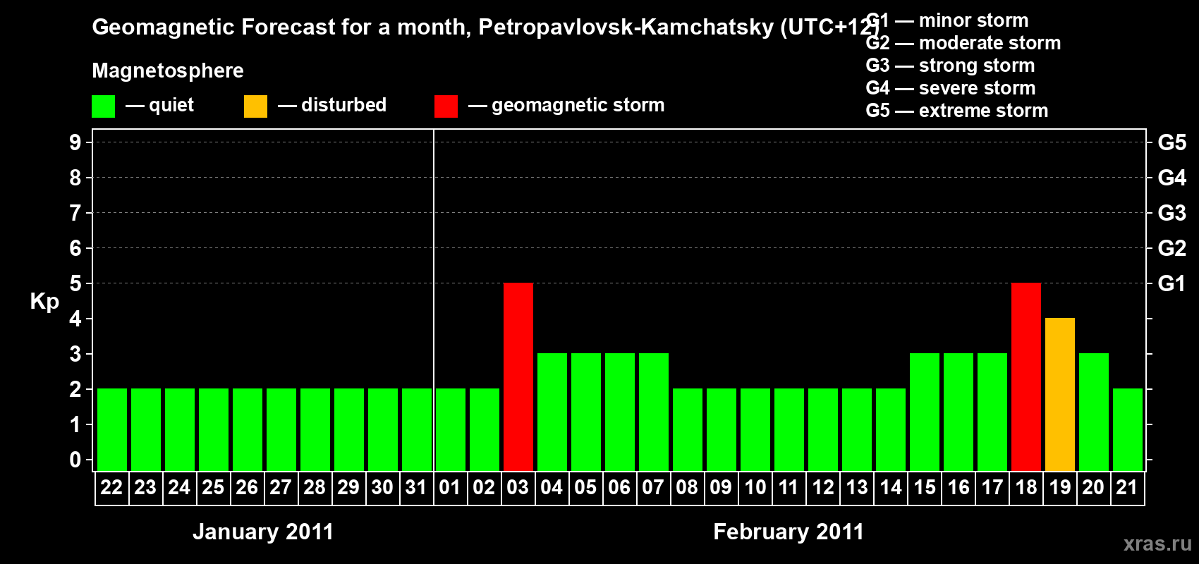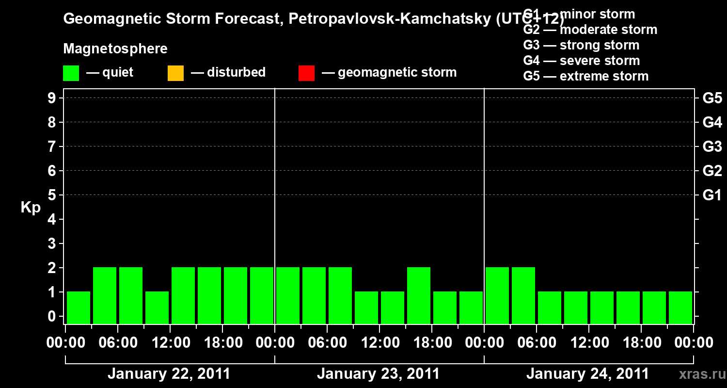 Geomagnetic storm forecast in Petropavlovsk-Kamchatsky for Jan 22, 2011