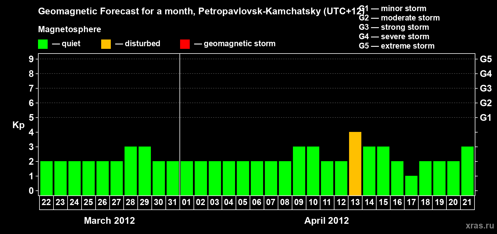 Geomagnetic activity forecast in Petropavlovsk-Kamchatsky — Mar 22, 2012