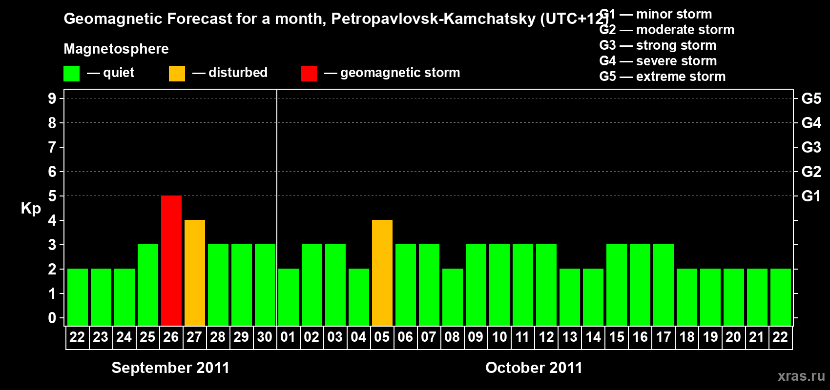 Geomagnetic storm forecast in Petropavlovsk-Kamchatsky for Sep 22, 2011