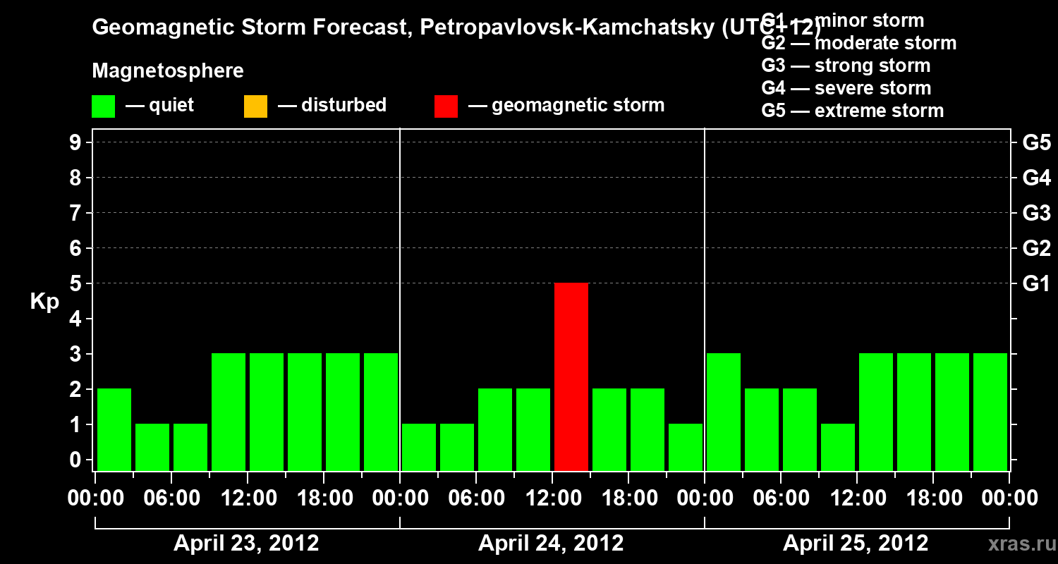 Geomagnetic activity forecast in Petropavlovsk-Kamchatsky — Apr 23, 2012