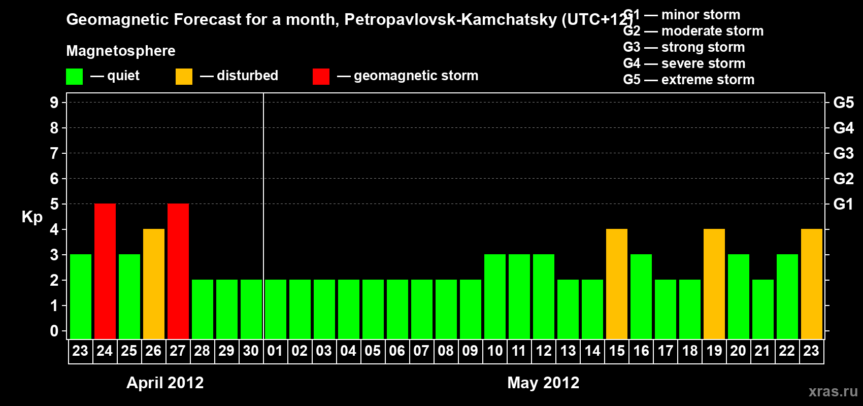 Geomagnetic storm forecast in Petropavlovsk-Kamchatsky for Apr 23, 2012