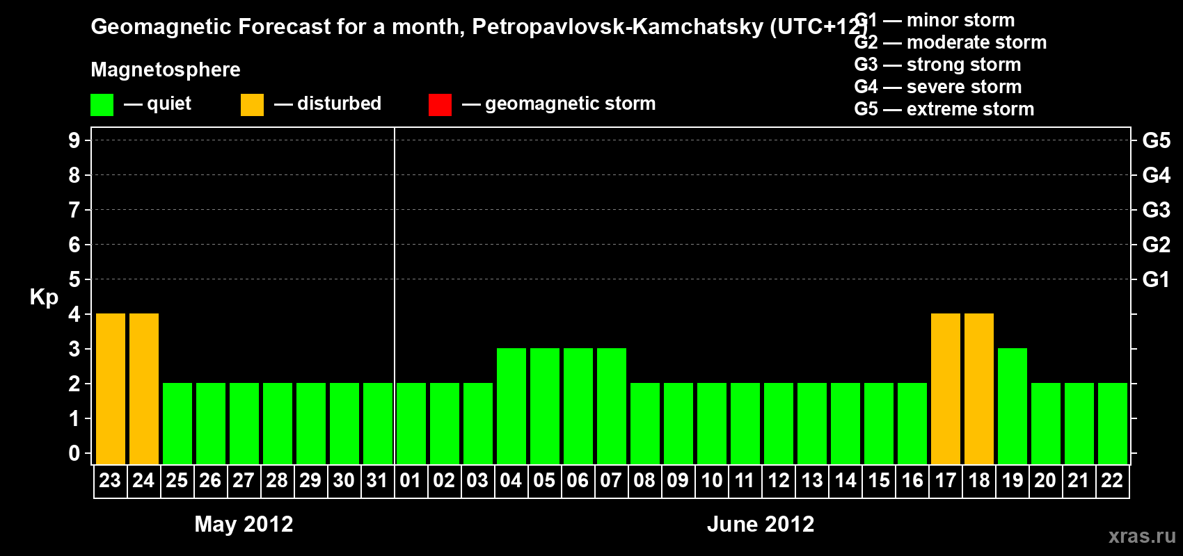 Geomagnetic storm forecast in Petropavlovsk-Kamchatsky for May 23, 2012
