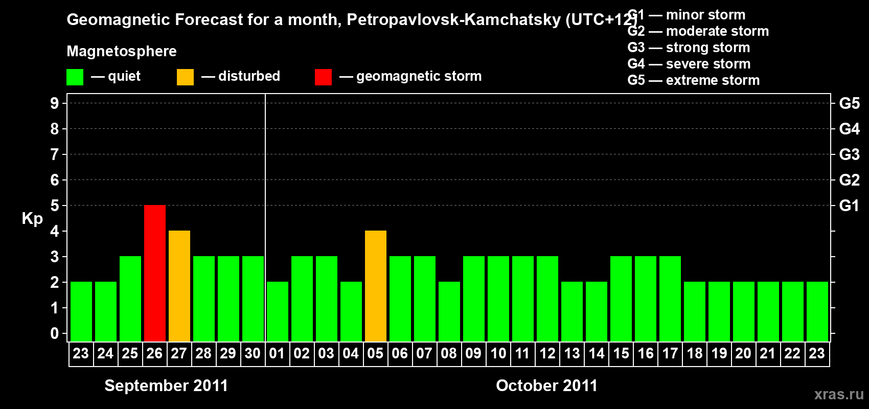 Geomagnetic storm forecast in Petropavlovsk-Kamchatsky for Sep 23, 2011
