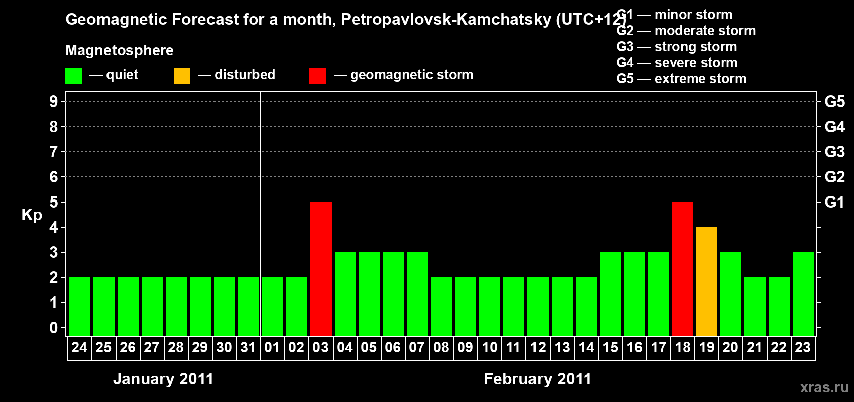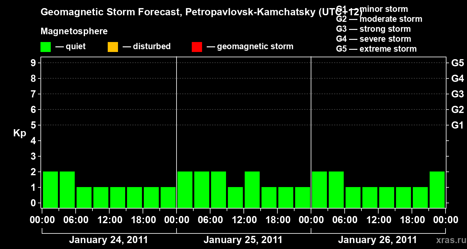 Geomagnetic storm forecast in Petropavlovsk-Kamchatsky for Jan 24, 2011