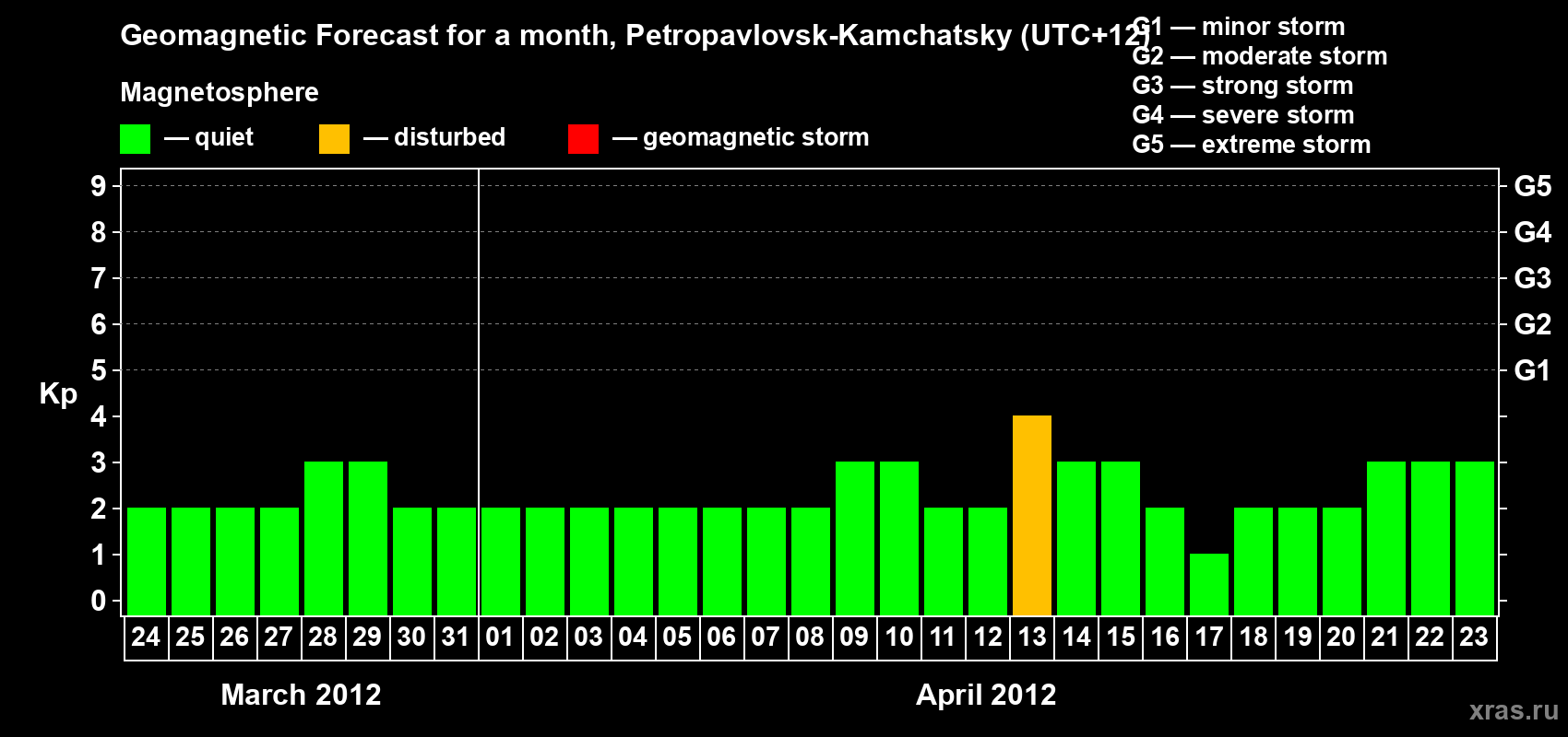 Geomagnetic storm forecast in Petropavlovsk-Kamchatsky for Mar 24, 2012