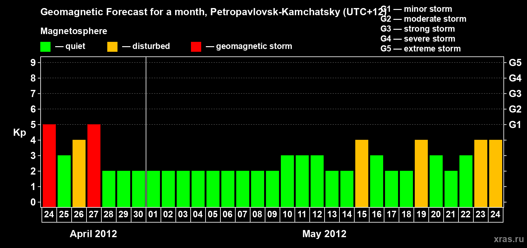 Geomagnetic storm forecast in Petropavlovsk-Kamchatsky for Apr 24, 2012