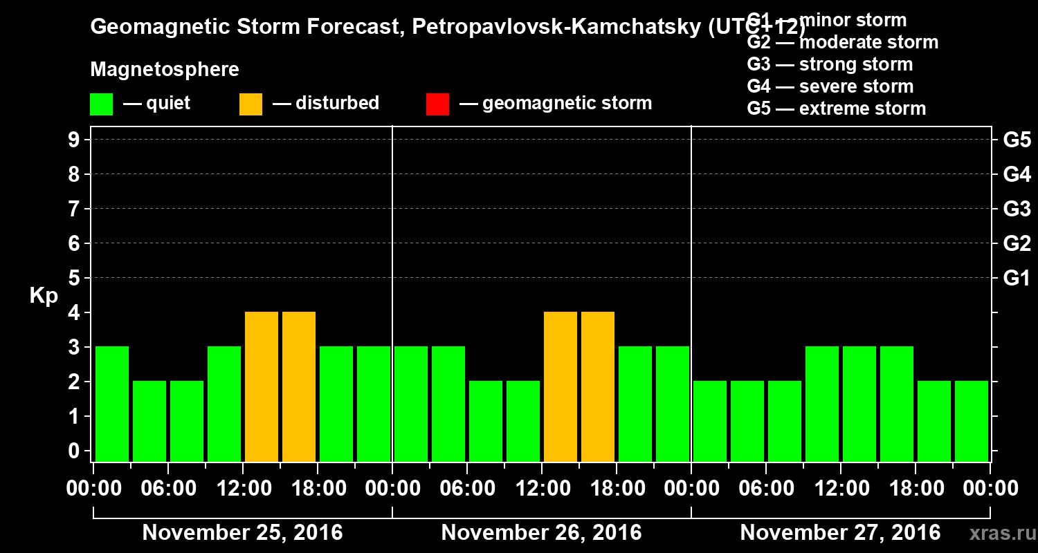 Geomagnetic activity forecast in Petropavlovsk-Kamchatsky — Nov 25, 2016