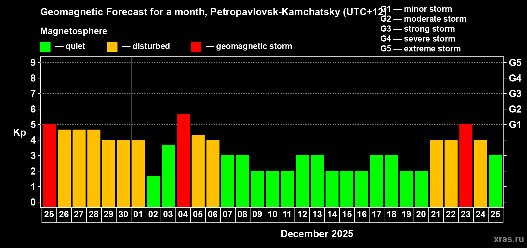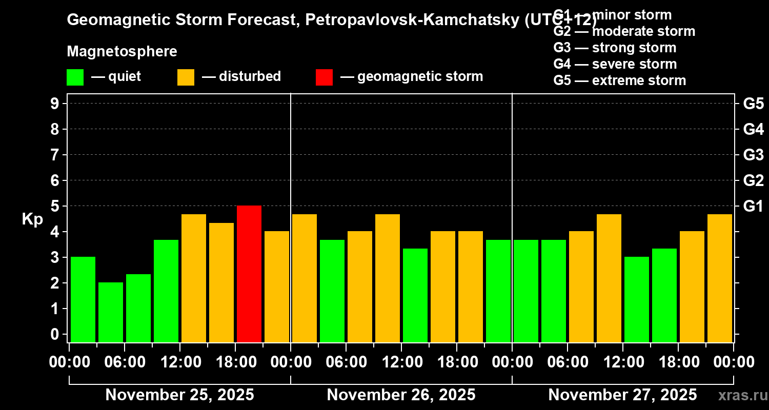 Geomagnetic storm forecast in Petropavlovsk-Kamchatsky for Nov 25, 2025