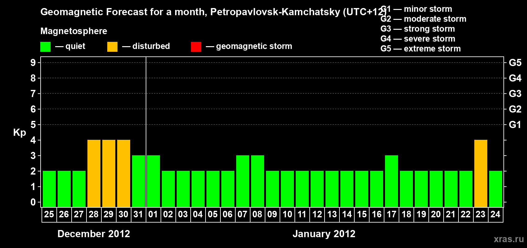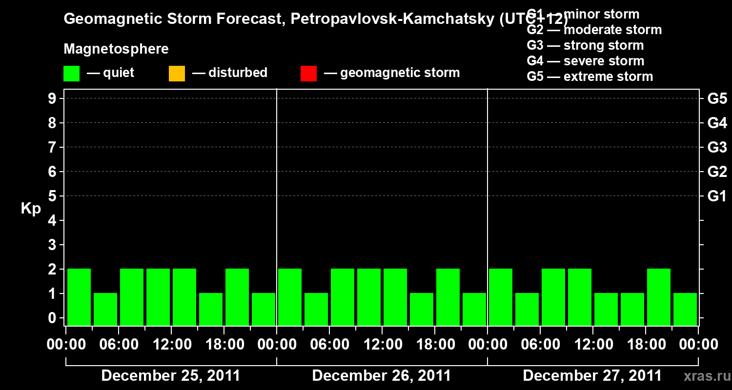 Geomagnetic storm forecast in Petropavlovsk-Kamchatsky for Dec 25, 2011