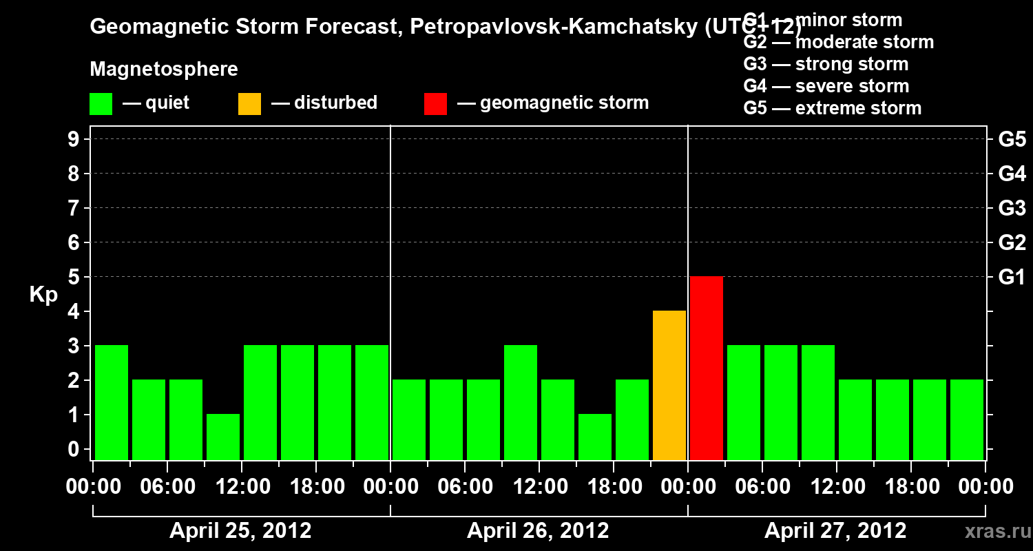 Geomagnetic storm forecast in Petropavlovsk-Kamchatsky for Apr 25, 2012