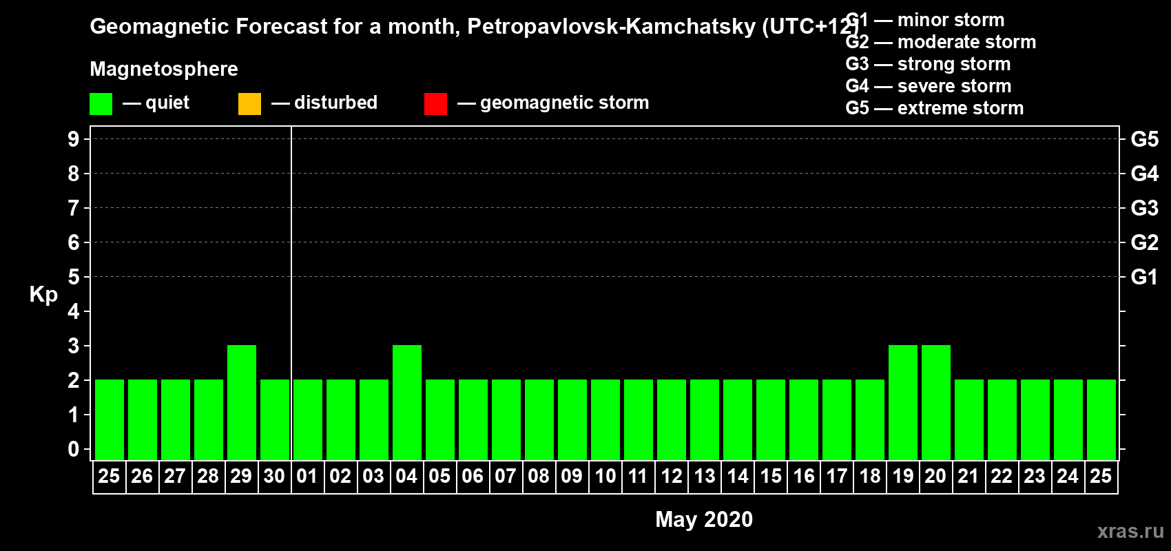 Geomagnetic activity forecast in Petropavlovsk-Kamchatsky — Apr 25, 2020