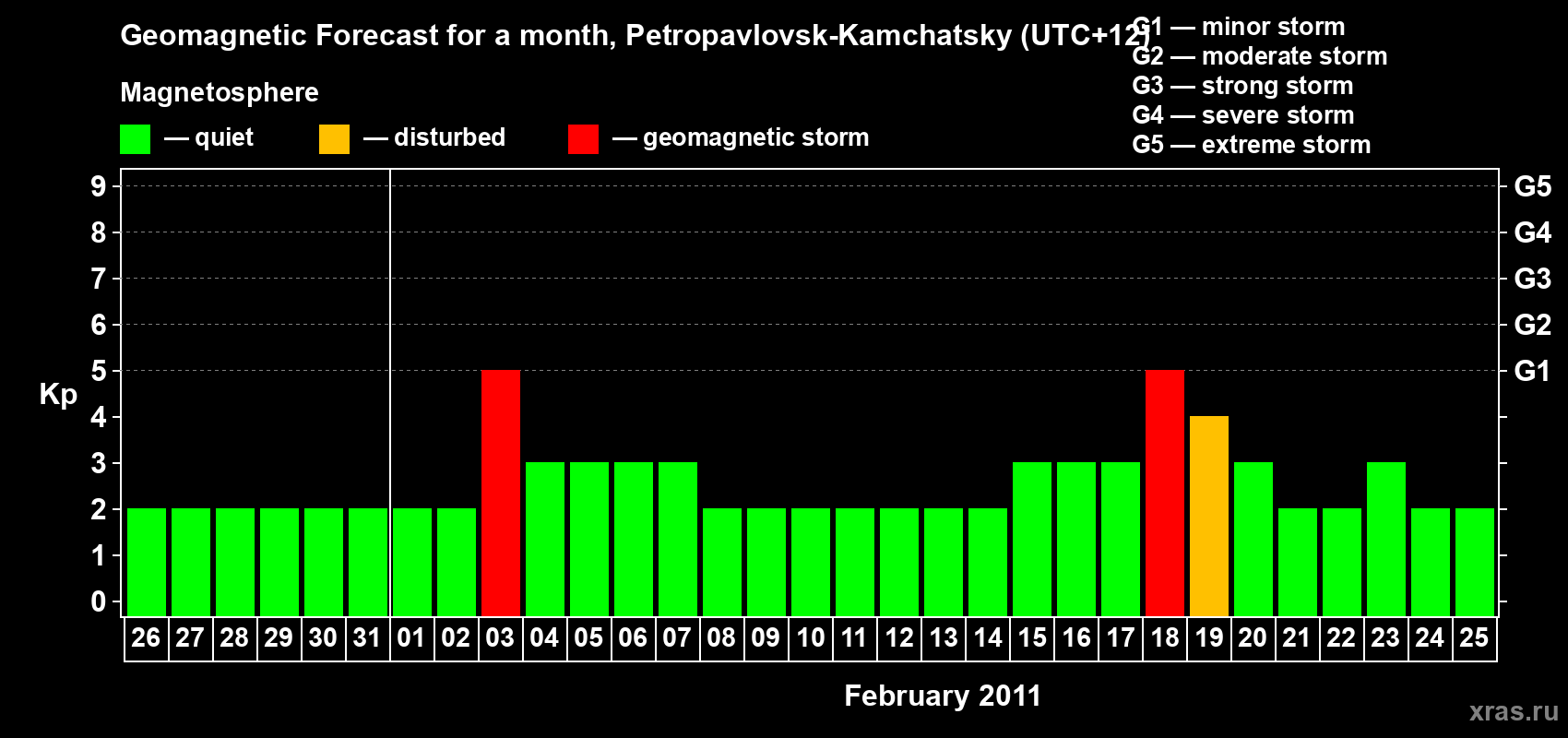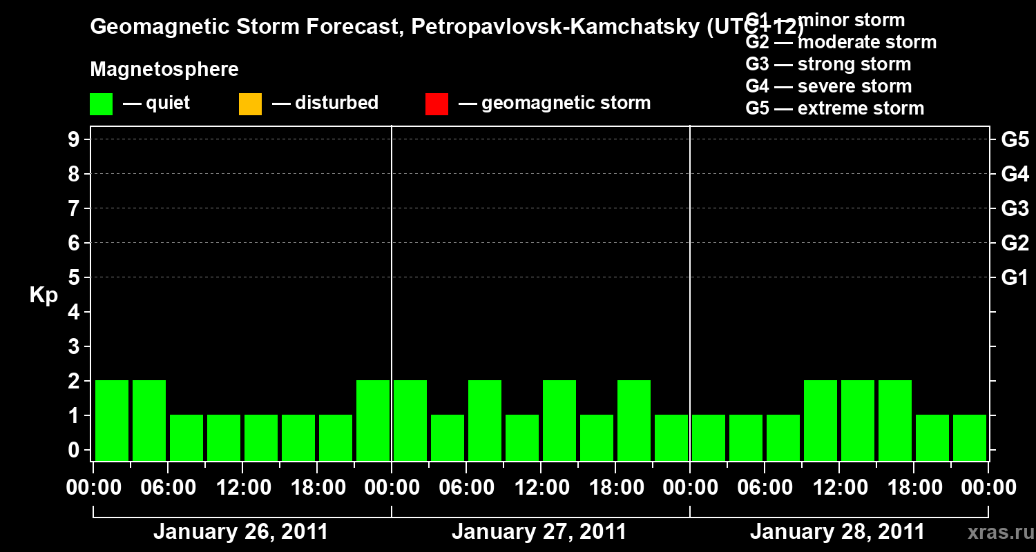 Geomagnetic storm forecast in Petropavlovsk-Kamchatsky for Jan 26, 2011