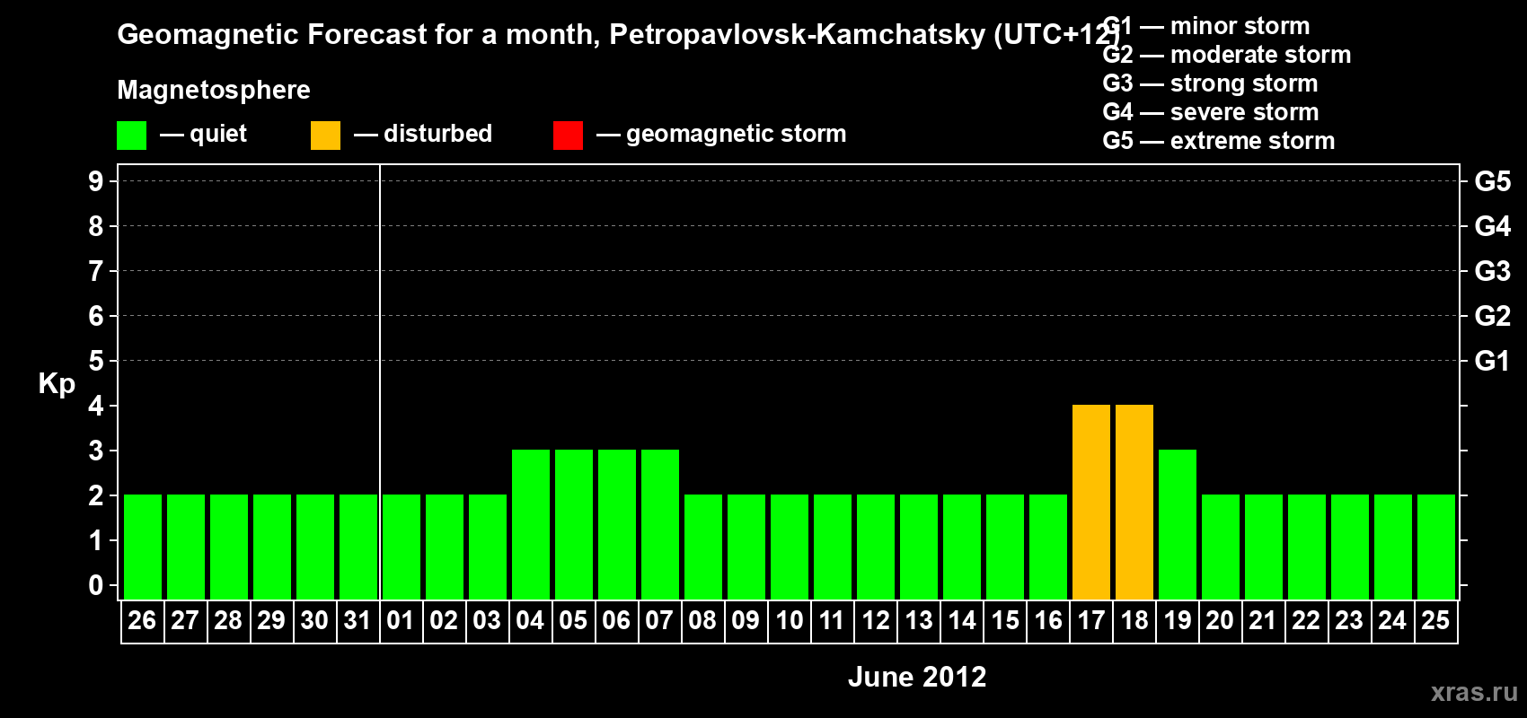 Geomagnetic activity forecast in Petropavlovsk-Kamchatsky — May 26, 2012
