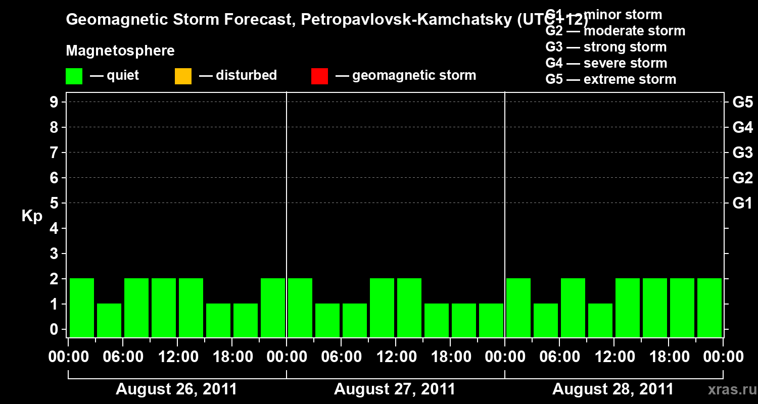 Geomagnetic storm forecast in Petropavlovsk-Kamchatsky for Aug 26, 2011