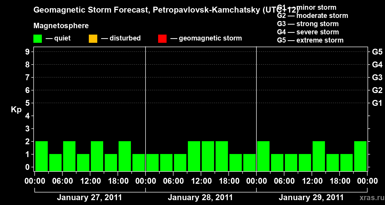Geomagnetic activity forecast in Petropavlovsk-Kamchatsky — Jan 27, 2011