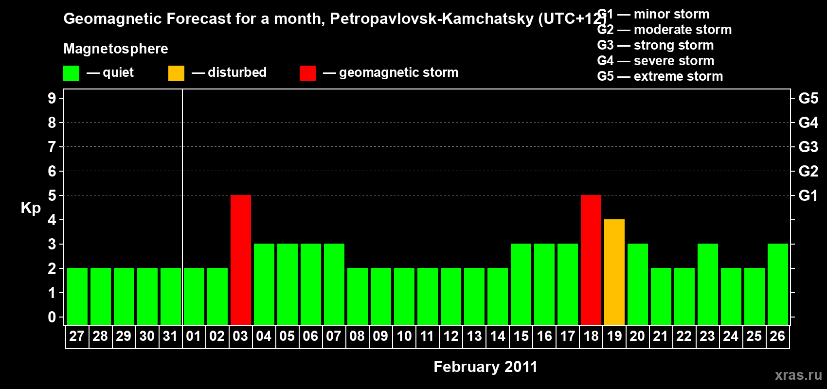 Geomagnetic storm forecast in Petropavlovsk-Kamchatsky for Jan 27, 2011