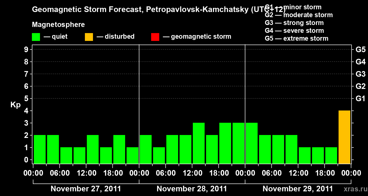 Geomagnetic storm forecast in Petropavlovsk-Kamchatsky for Nov 27, 2011