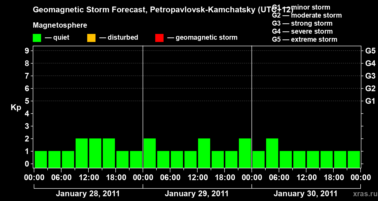 Geomagnetic activity forecast in Petropavlovsk-Kamchatsky — Jan 28, 2011