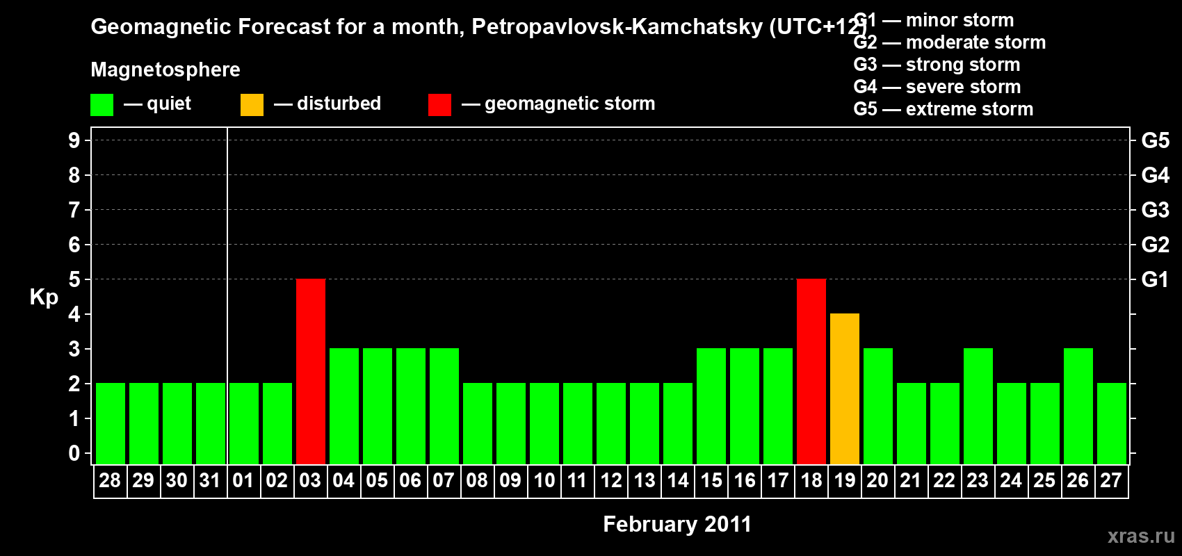 Geomagnetic storm forecast in Petropavlovsk-Kamchatsky for Jan 28, 2011