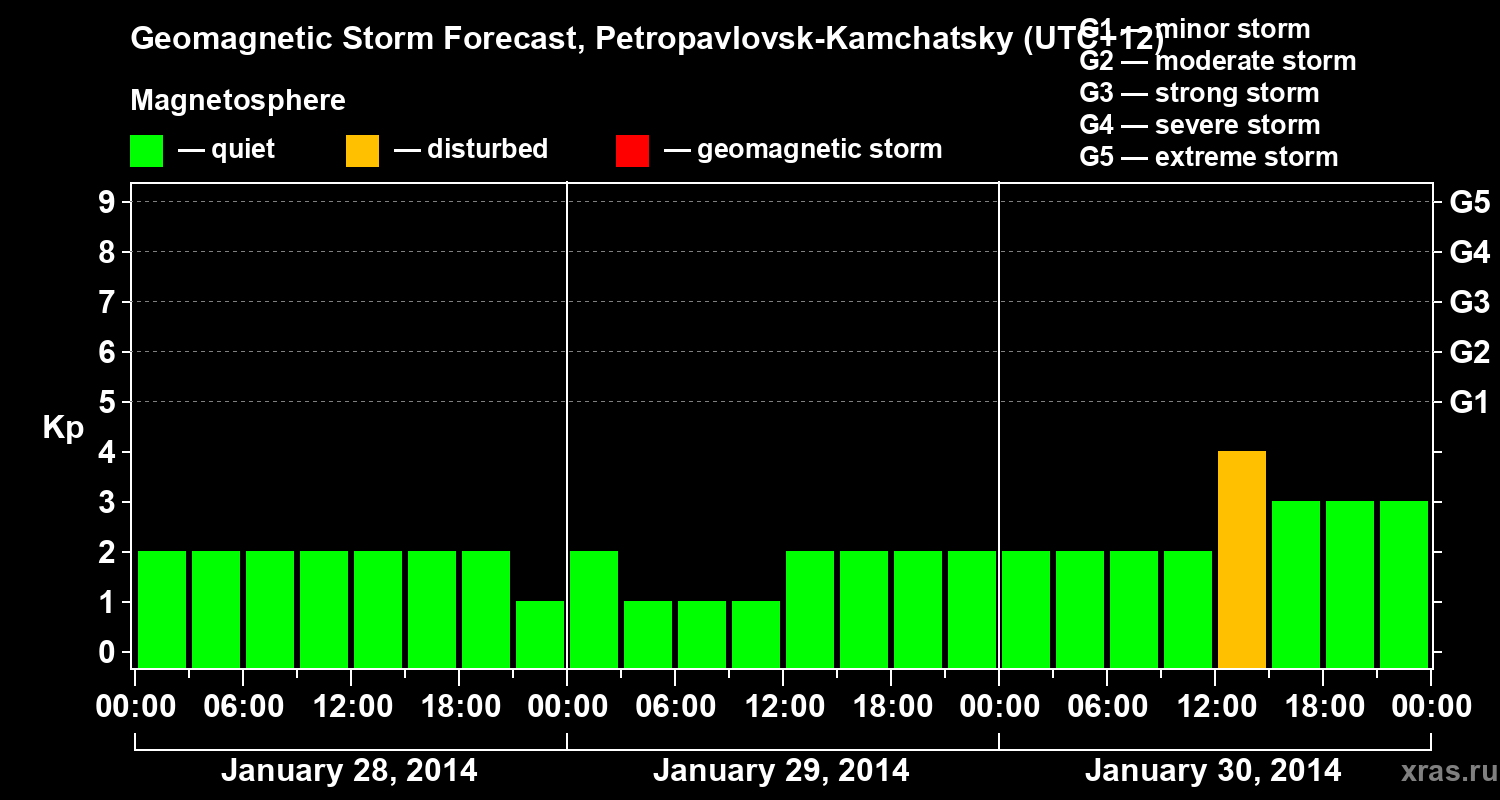 Geomagnetic storm forecast in Petropavlovsk-Kamchatsky for Jan 28, 2014