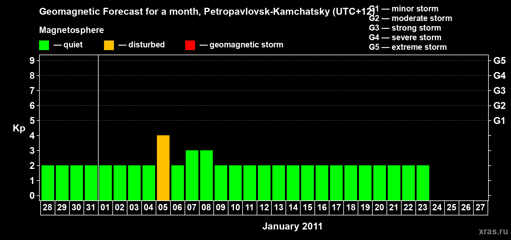 Geomagnetic storm forecast in Petropavlovsk-Kamchatsky for Dec 28, 2010