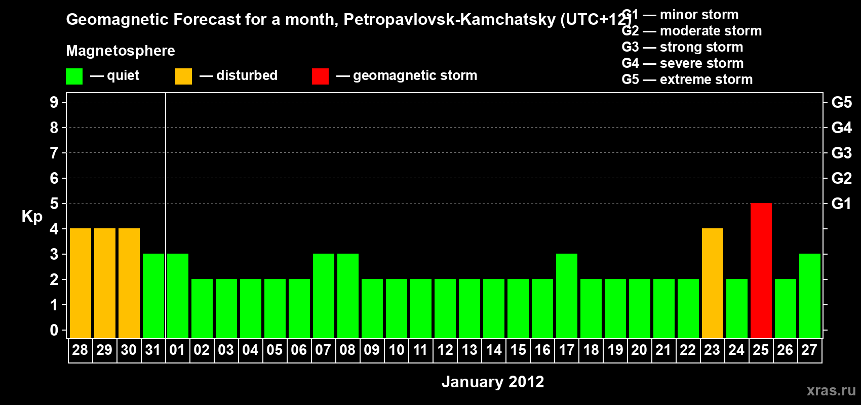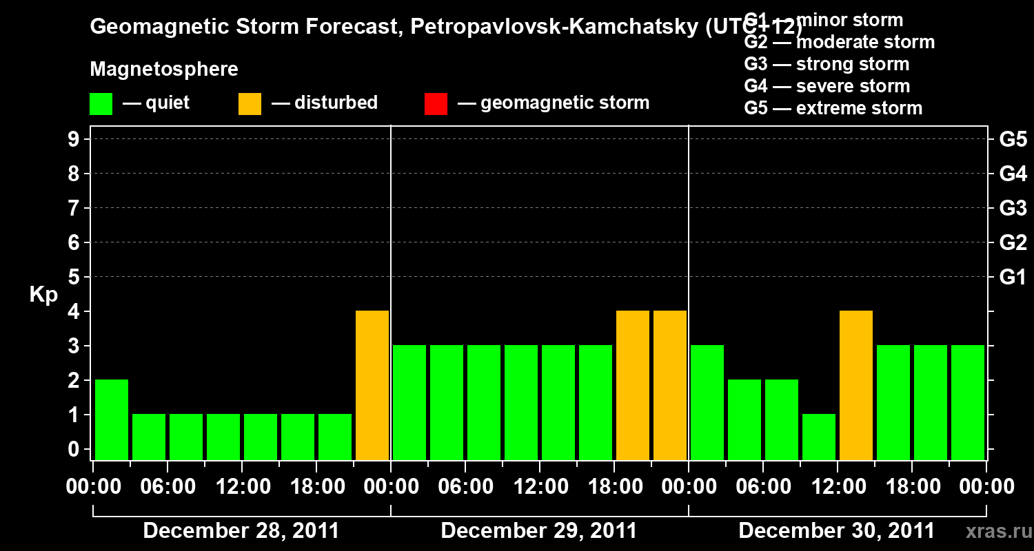 Geomagnetic storm forecast in Petropavlovsk-Kamchatsky for Dec 28, 2011