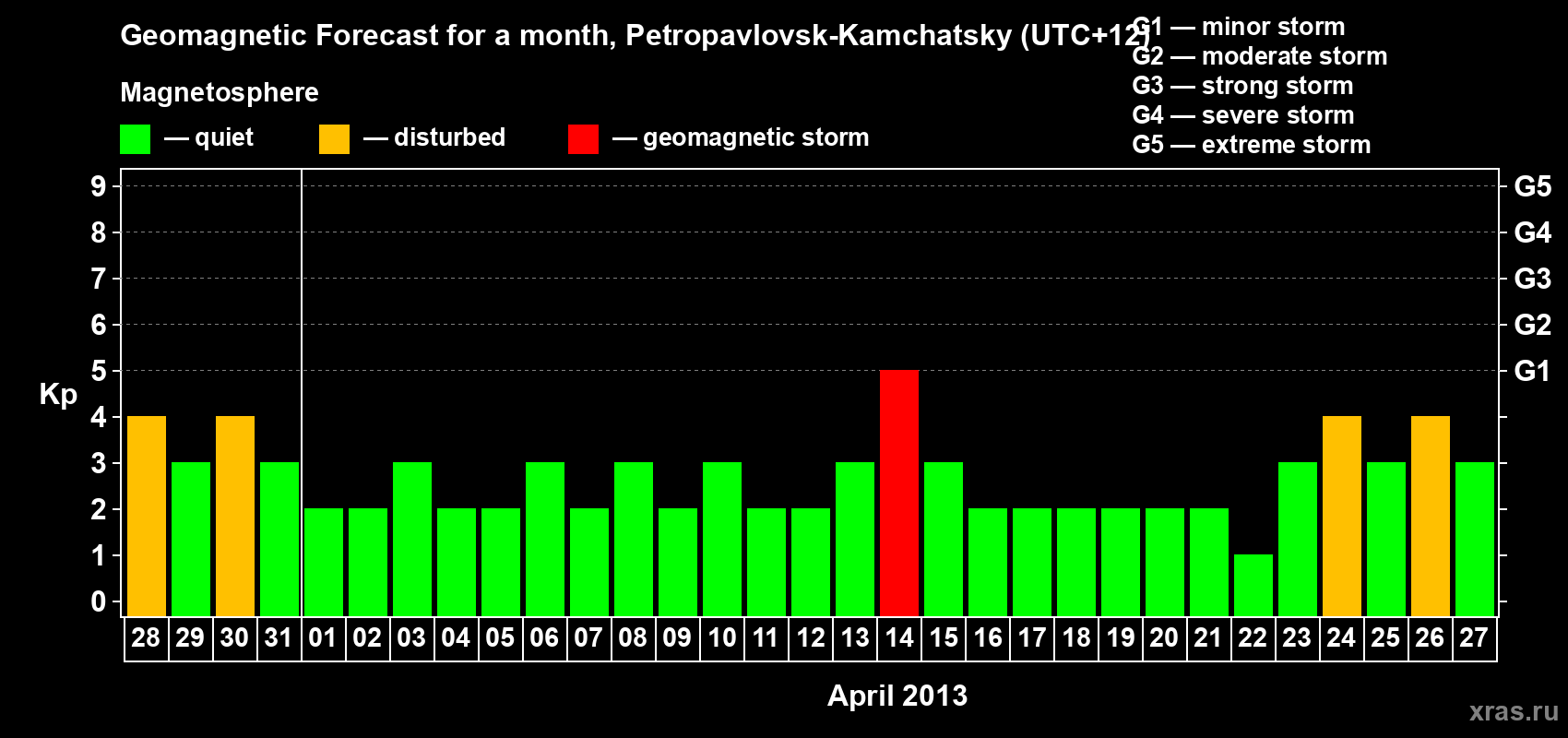 Geomagnetic activity forecast in Petropavlovsk-Kamchatsky — Mar 28, 2013