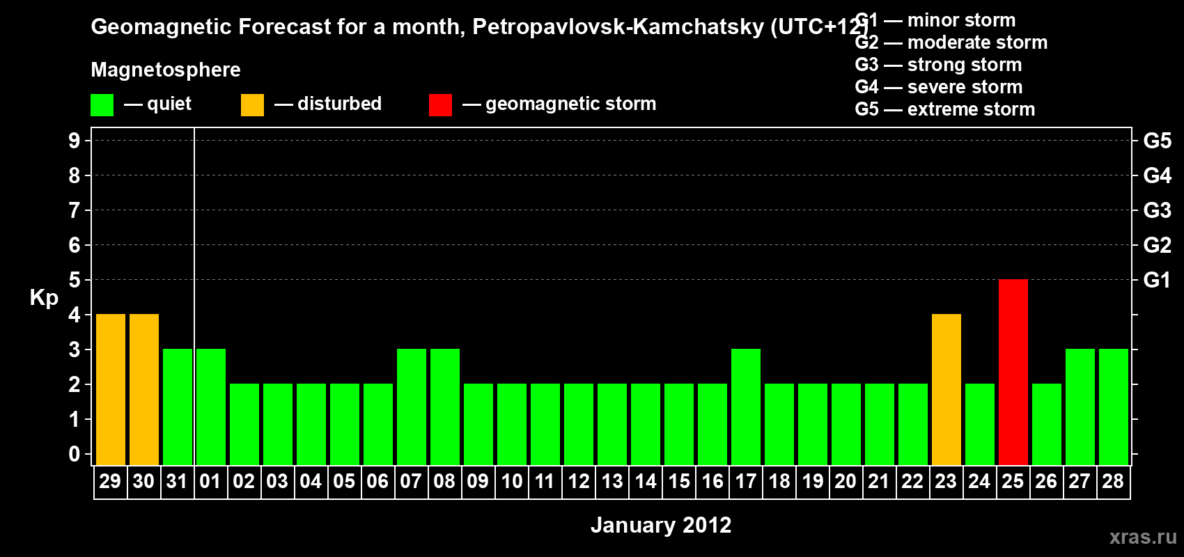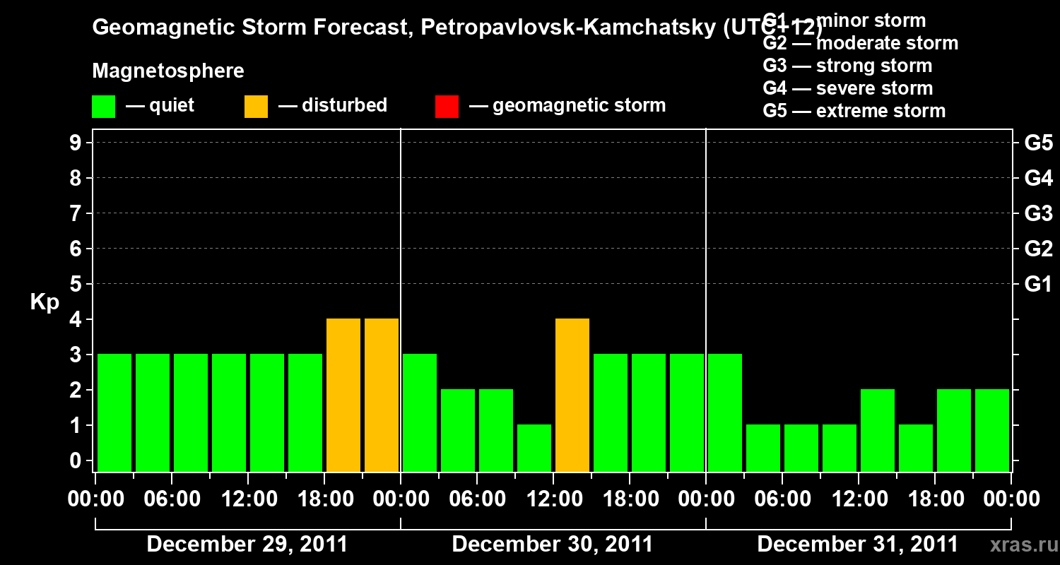 Geomagnetic storm forecast in Petropavlovsk-Kamchatsky for Dec 29, 2011