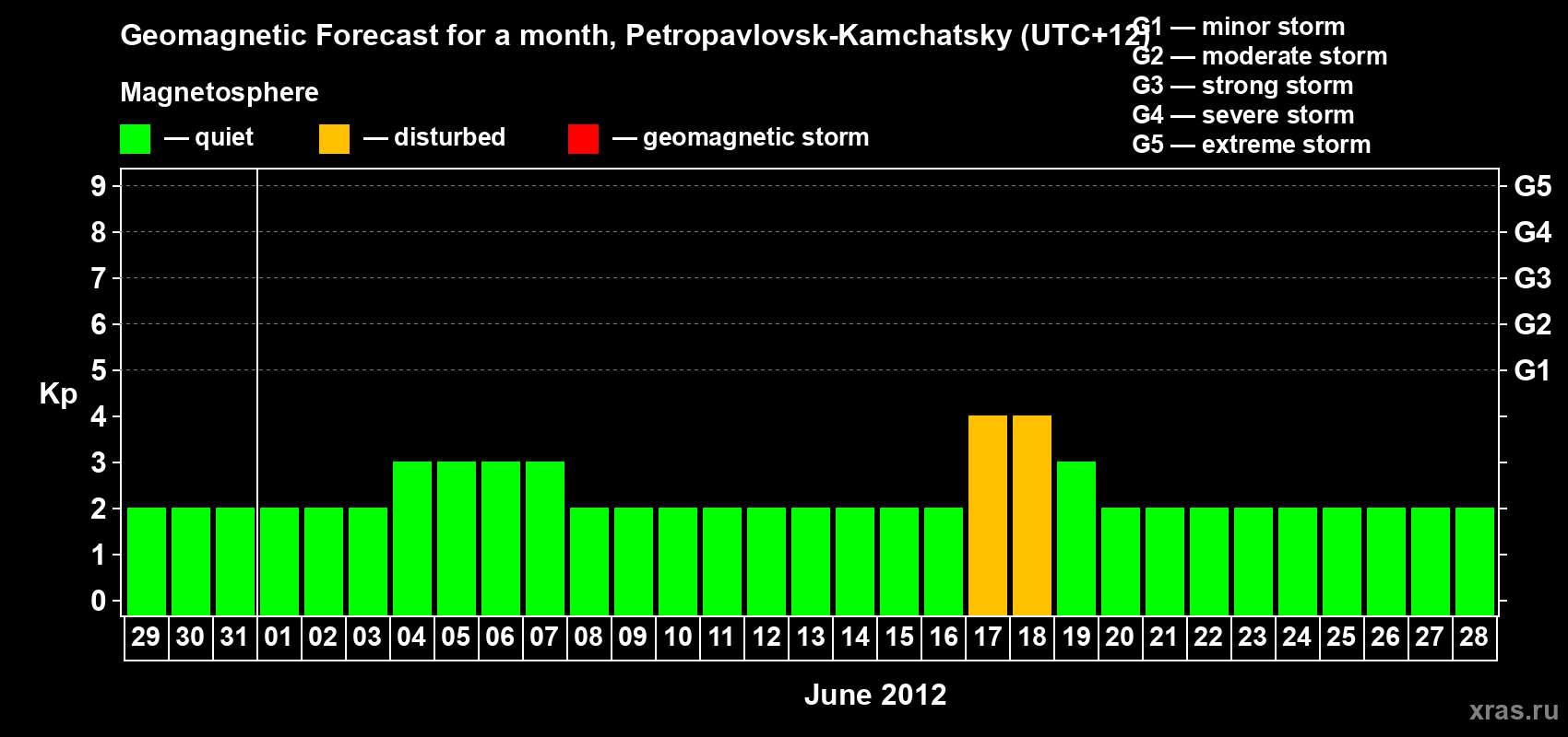 Geomagnetic activity forecast in Petropavlovsk-Kamchatsky — May 29, 2012
