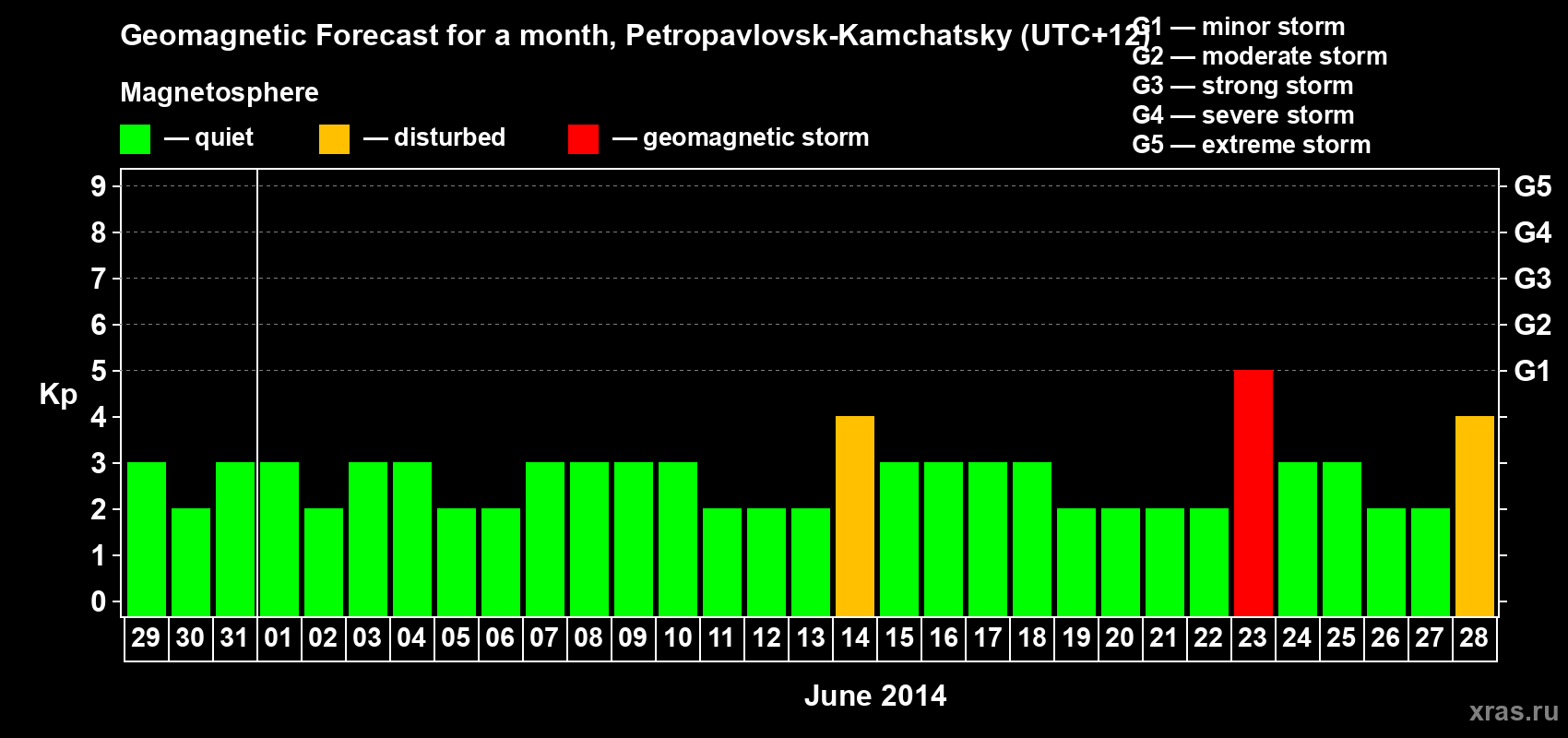 Geomagnetic storm forecast in Petropavlovsk-Kamchatsky for May 29, 2014