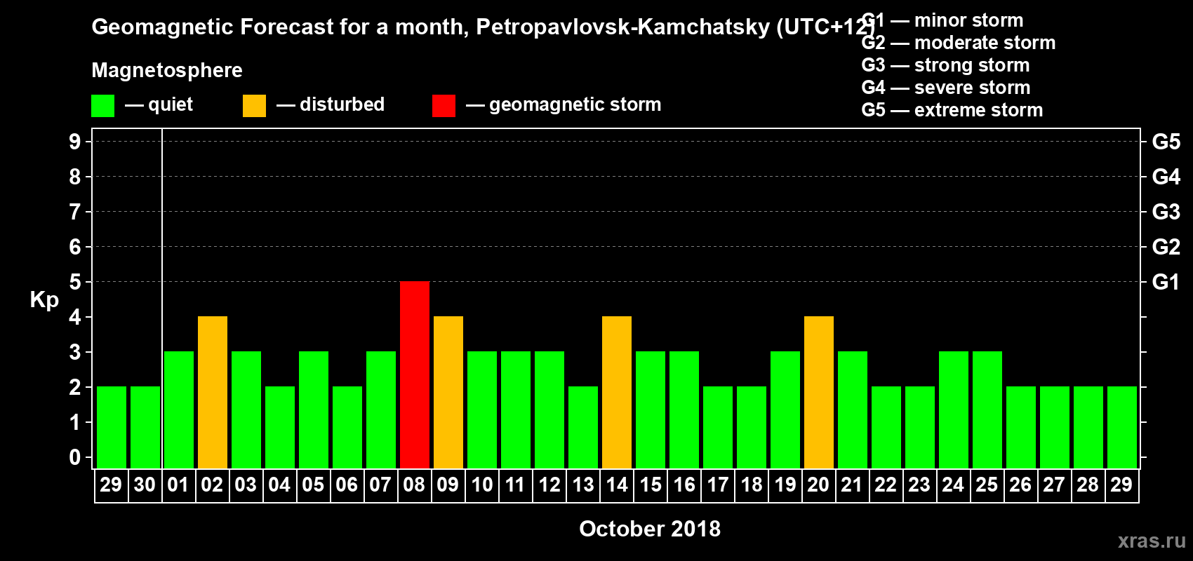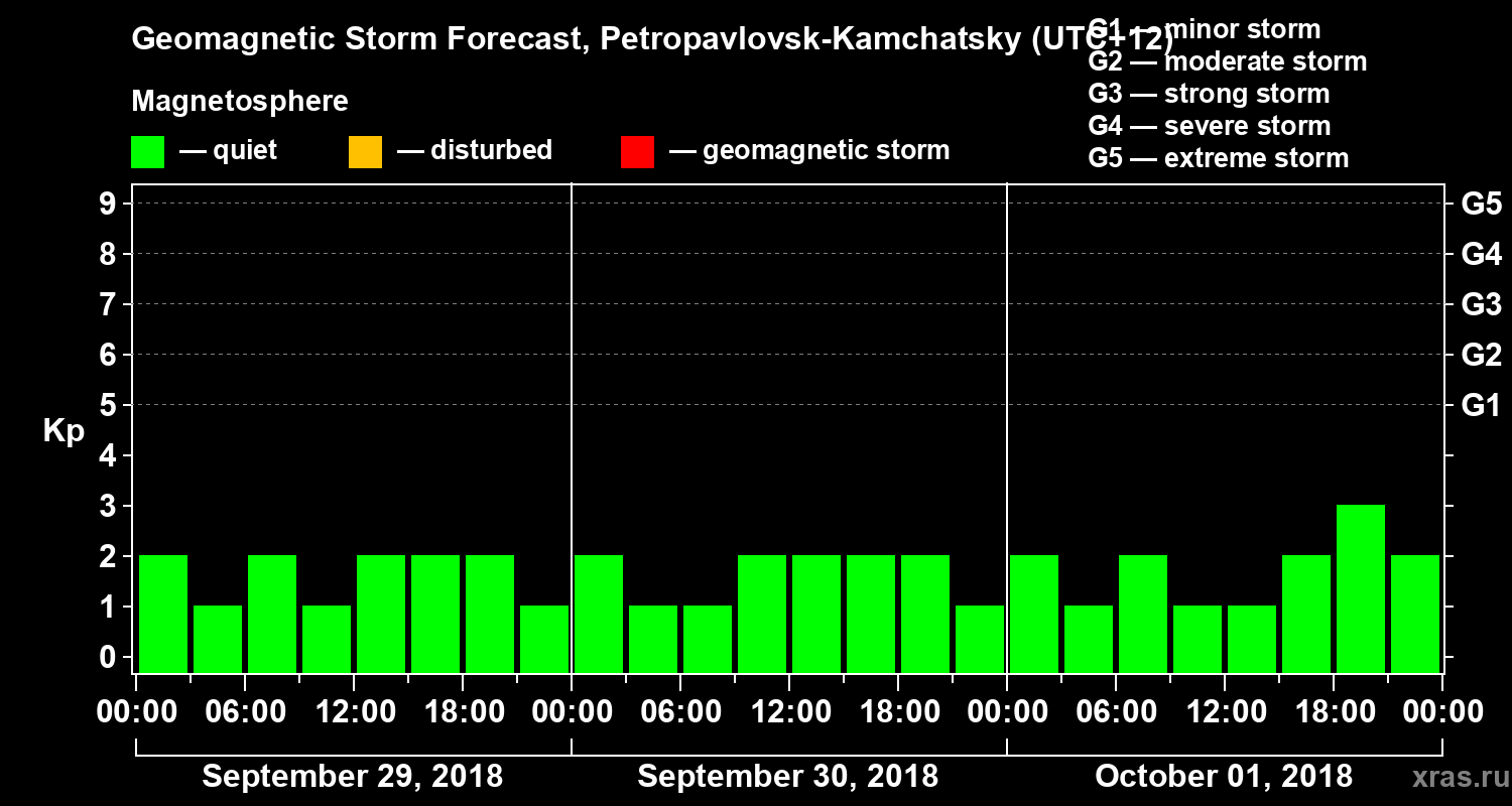 Geomagnetic storm forecast in Petropavlovsk-Kamchatsky for Sep 29, 2018