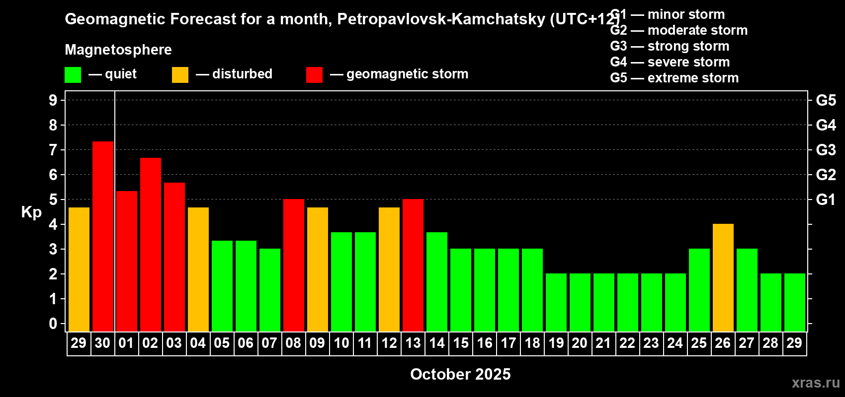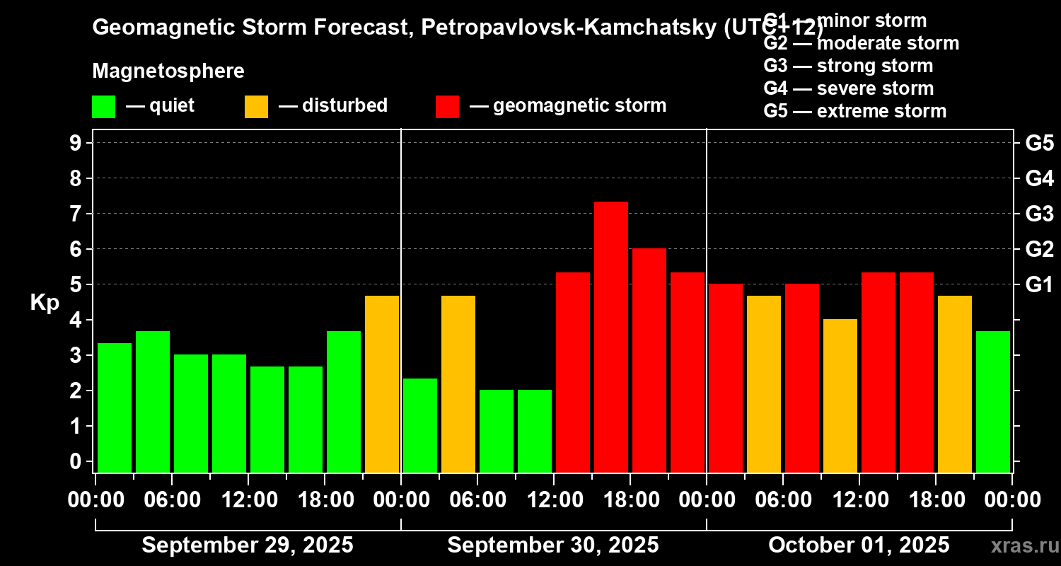 Geomagnetic storm forecast in Petropavlovsk-Kamchatsky for Sep 29, 2025