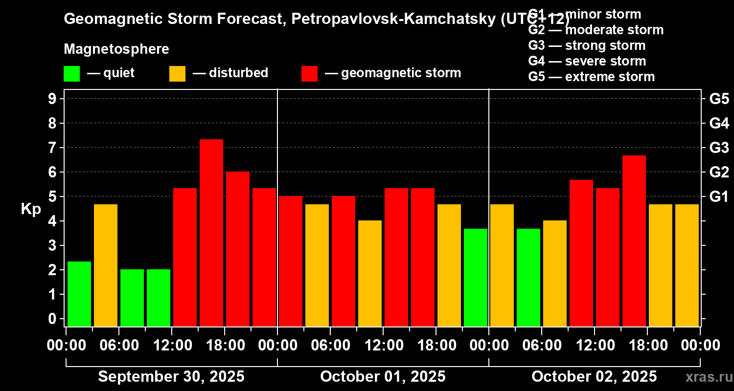 Geomagnetic storm forecast in Petropavlovsk-Kamchatsky for Sep 30, 2025