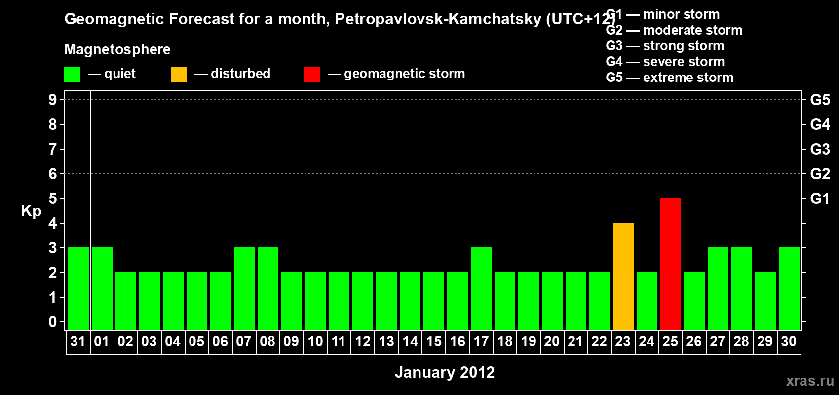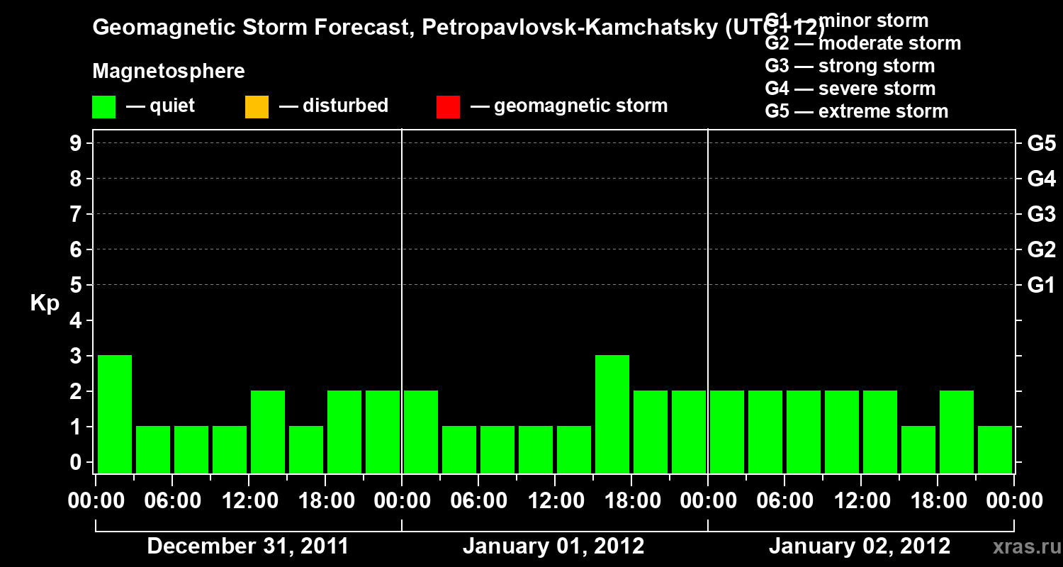 Geomagnetic storm forecast in Petropavlovsk-Kamchatsky for Dec 31, 2011