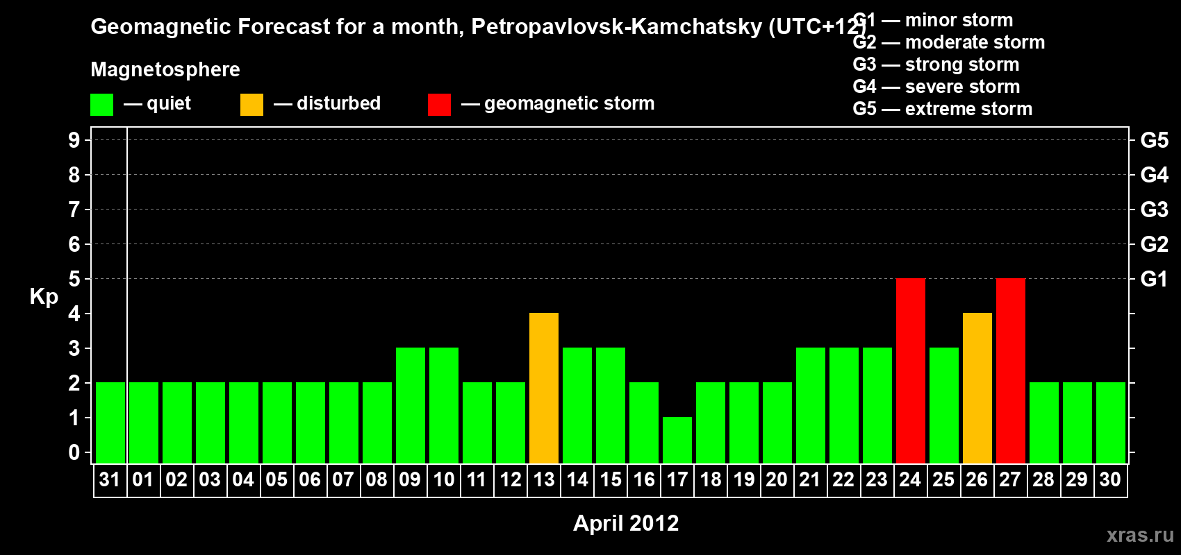 Geomagnetic storm forecast in Petropavlovsk-Kamchatsky for Mar 31, 2012