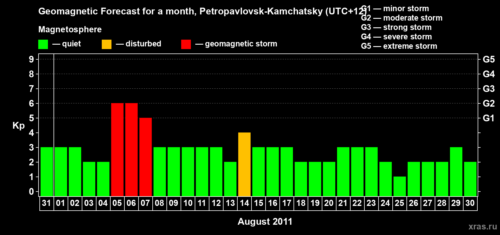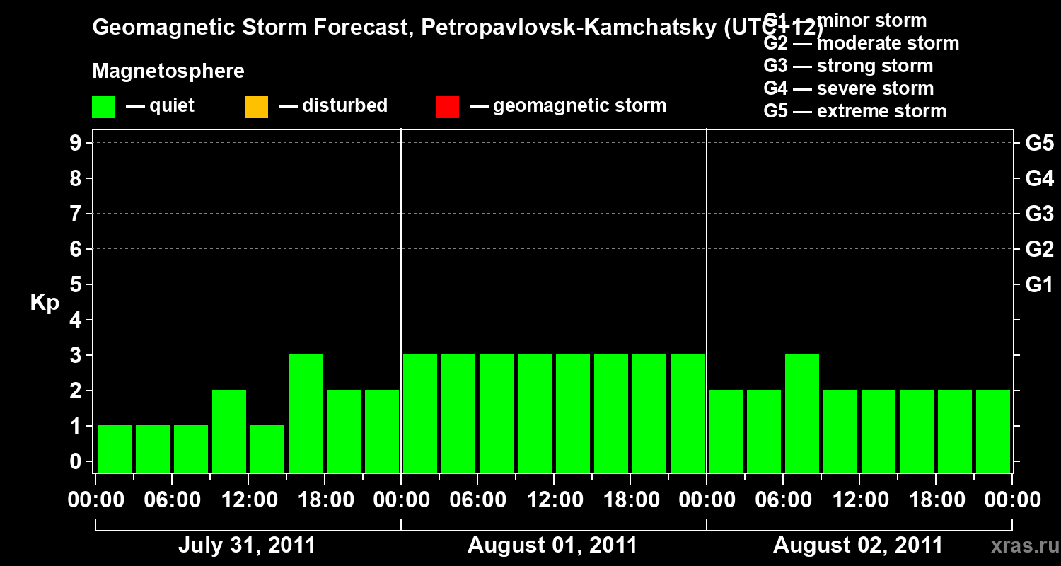 Geomagnetic activity forecast in Petropavlovsk-Kamchatsky — Jul 31, 2011