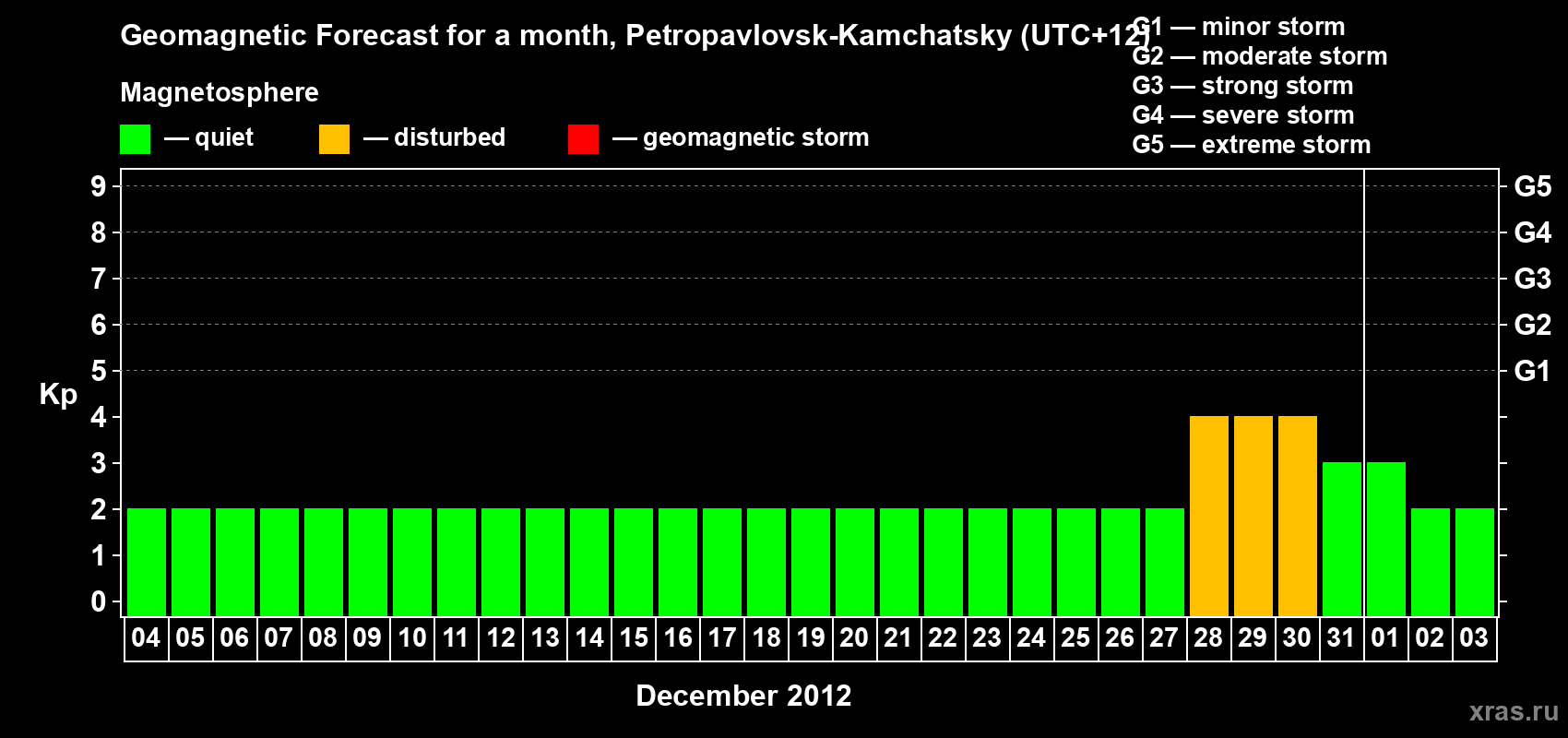 Geomagnetic storm forecast in Petropavlovsk-Kamchatsky for Dec 04, 2011