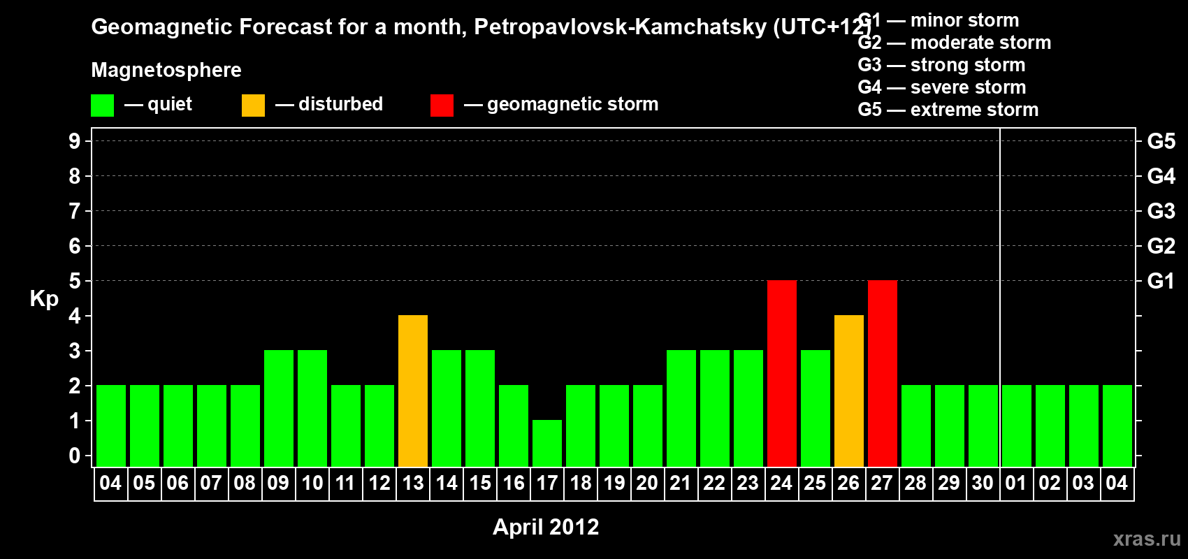 Geomagnetic storm forecast in Petropavlovsk-Kamchatsky for Apr 04, 2012