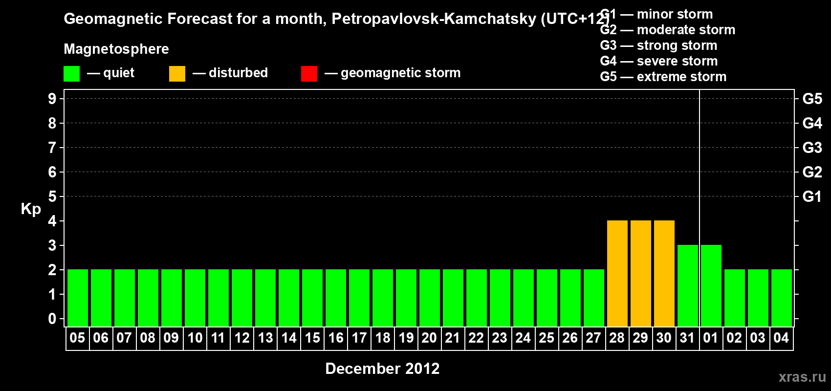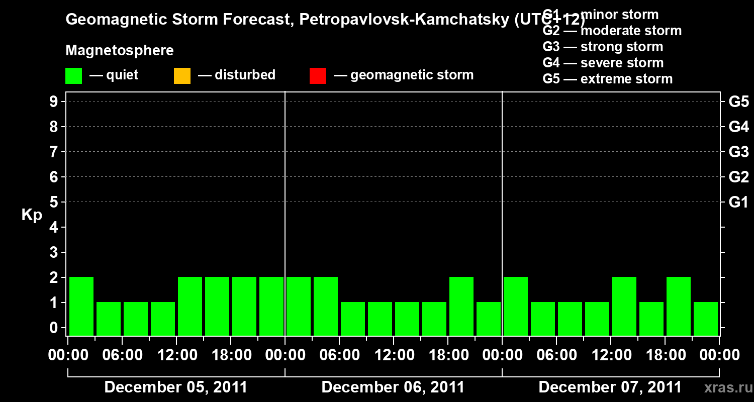 Geomagnetic storm forecast in Petropavlovsk-Kamchatsky for Dec 05, 2011