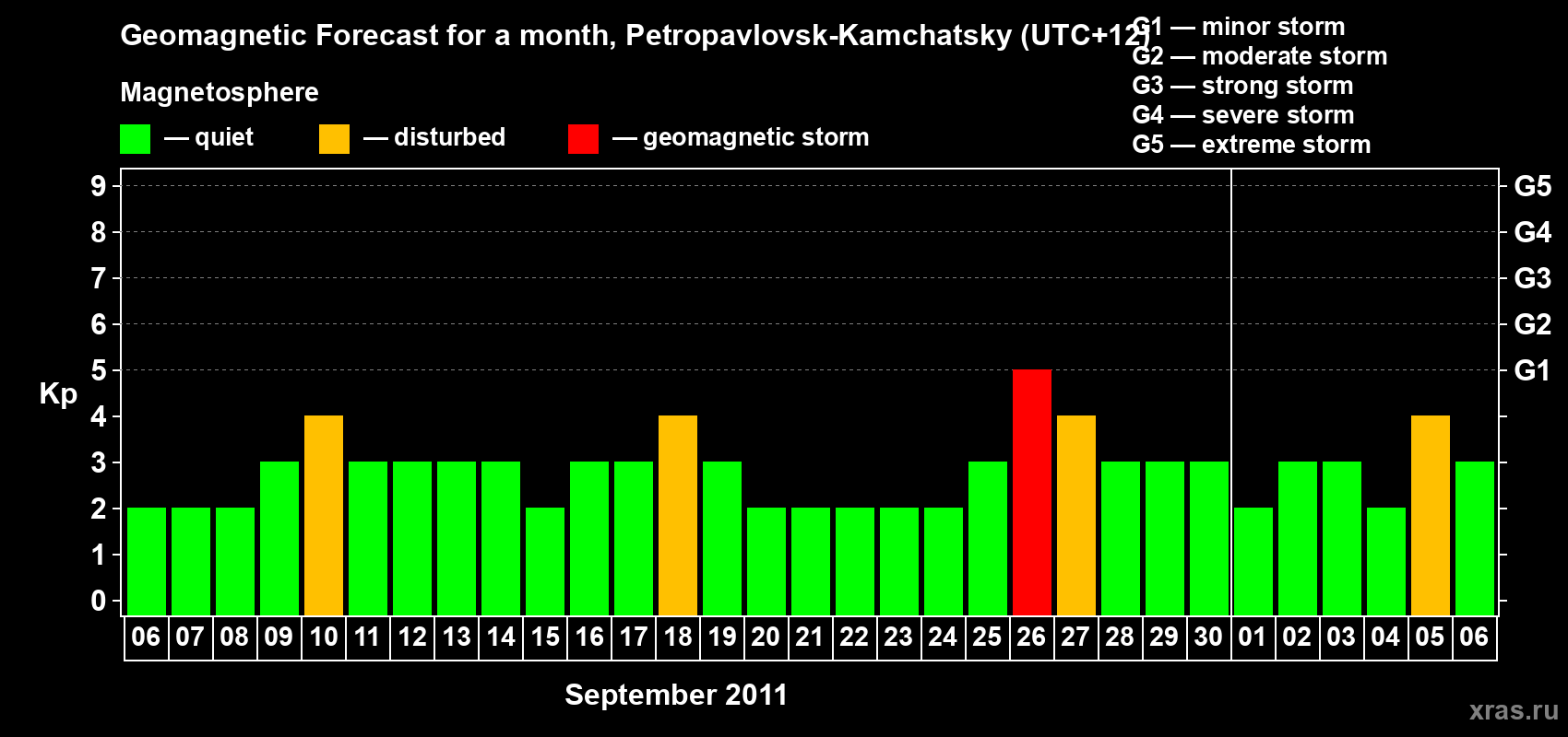 Geomagnetic storm forecast in Petropavlovsk-Kamchatsky for Sep 06, 2011