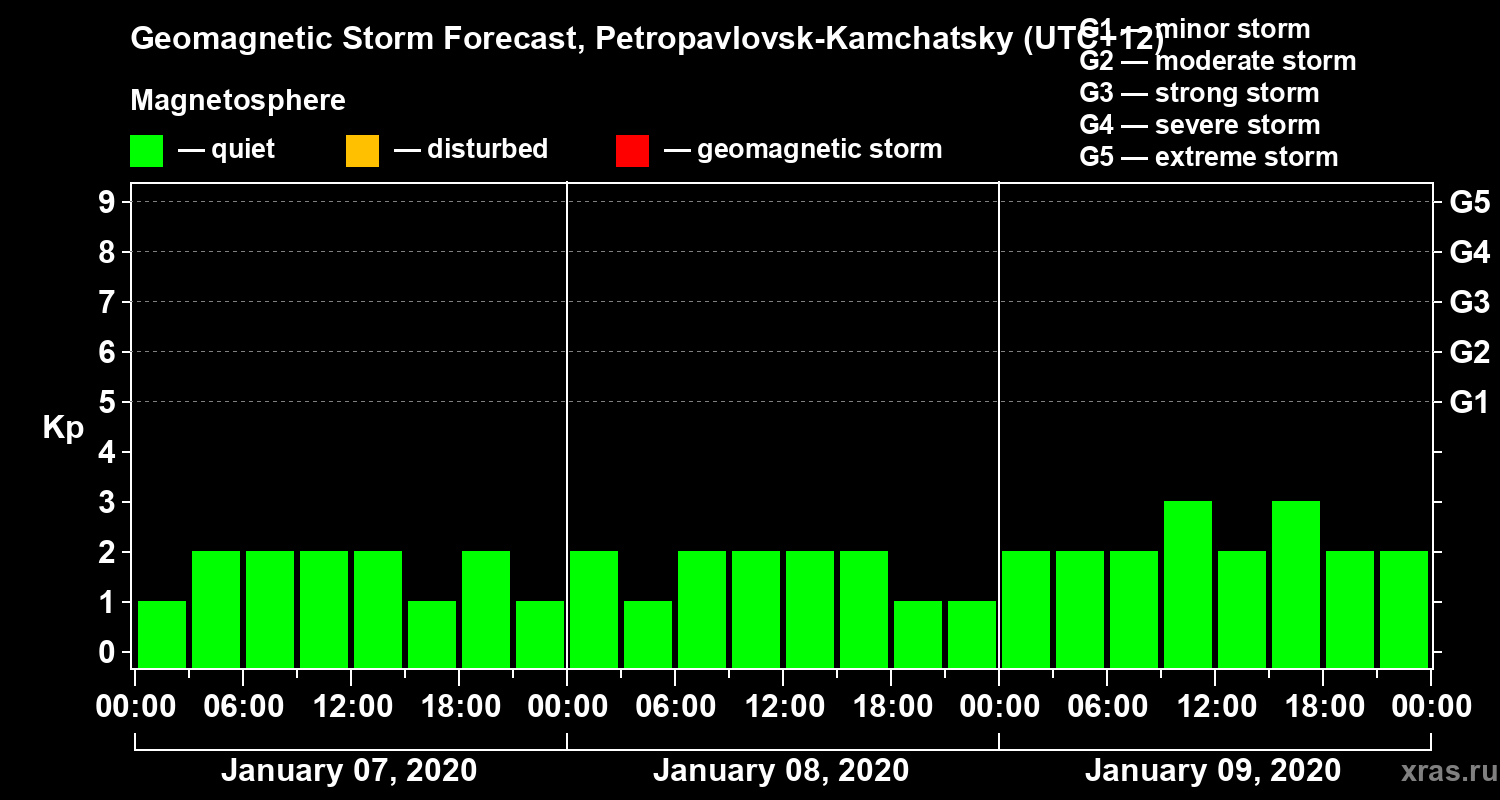 Geomagnetic storm forecast in Petropavlovsk-Kamchatsky for Jan 07, 2020