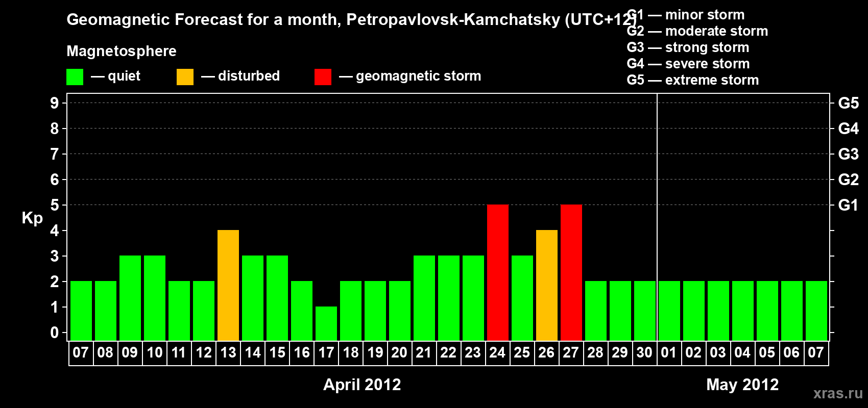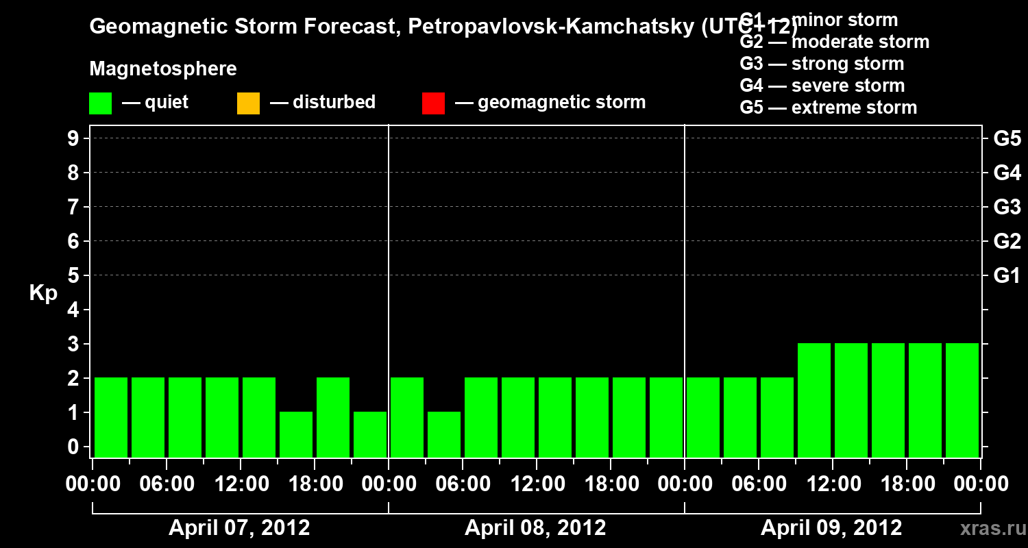 Geomagnetic storm forecast in Petropavlovsk-Kamchatsky for Apr 07, 2012
