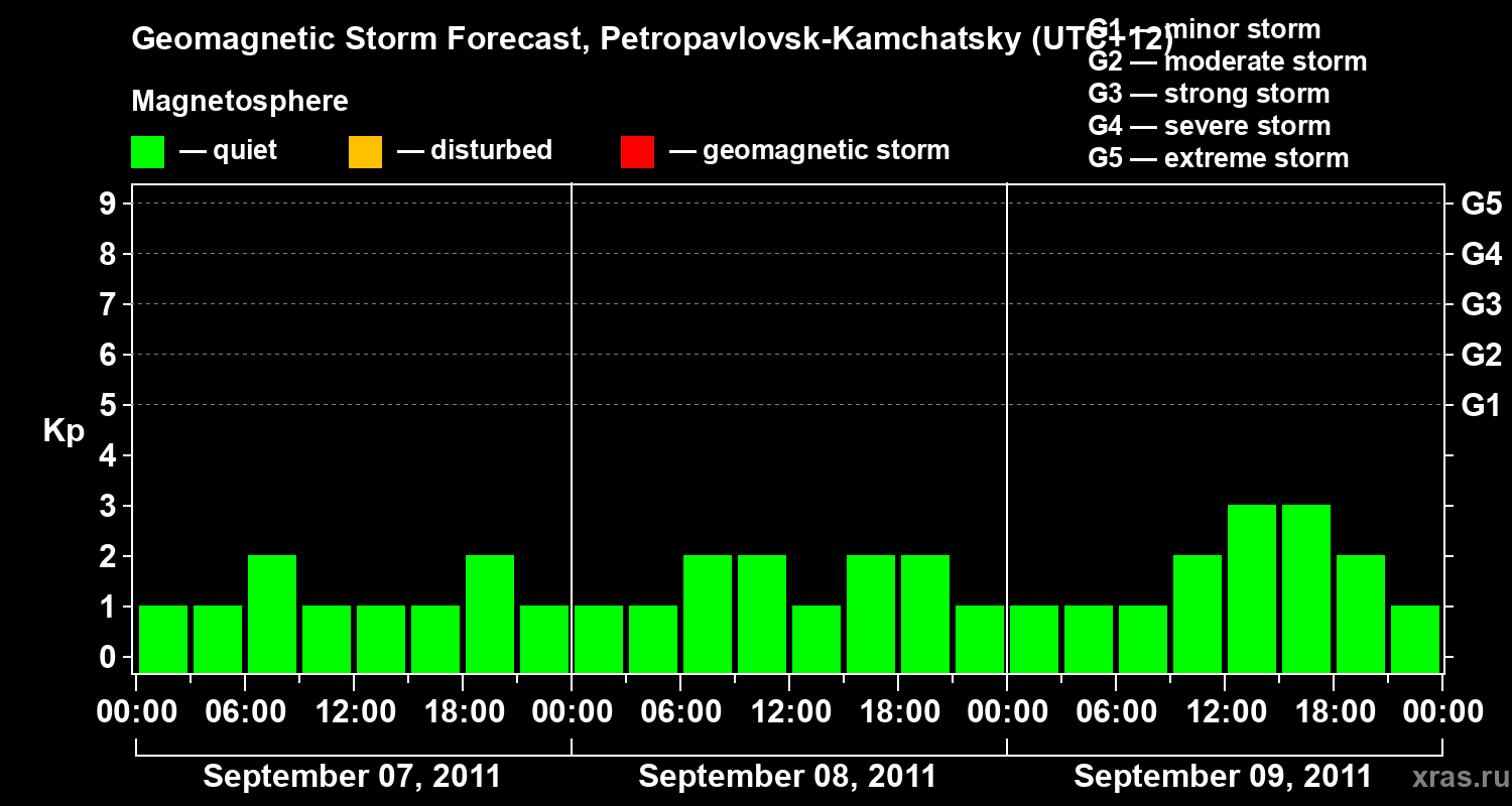 Geomagnetic storm forecast in Petropavlovsk-Kamchatsky for Sep 07, 2011