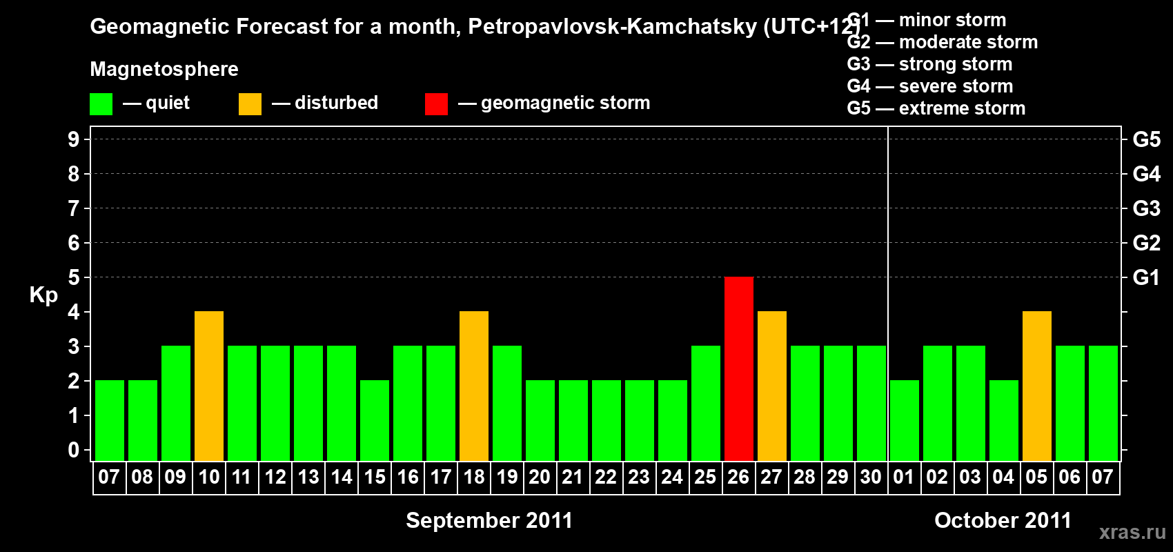 Geomagnetic activity forecast in Petropavlovsk-Kamchatsky — Sep 07, 2011