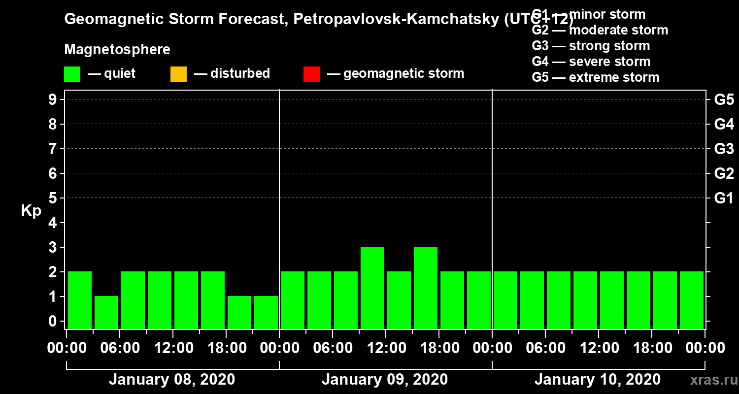 Geomagnetic storm forecast in Petropavlovsk-Kamchatsky for Jan 08, 2020