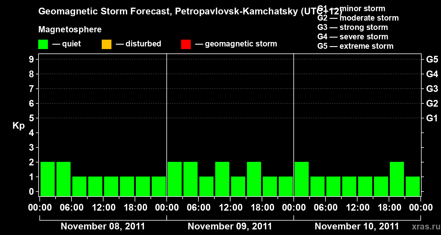 Geomagnetic storm forecast in Petropavlovsk-Kamchatsky for Nov 08, 2011
