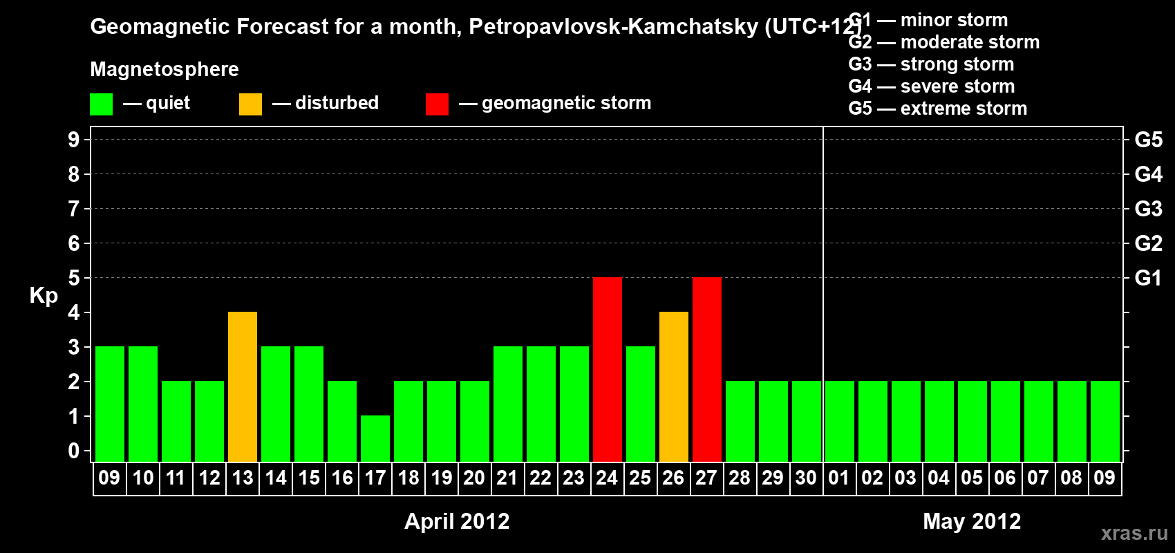 Geomagnetic storm forecast in Petropavlovsk-Kamchatsky for Apr 09, 2012