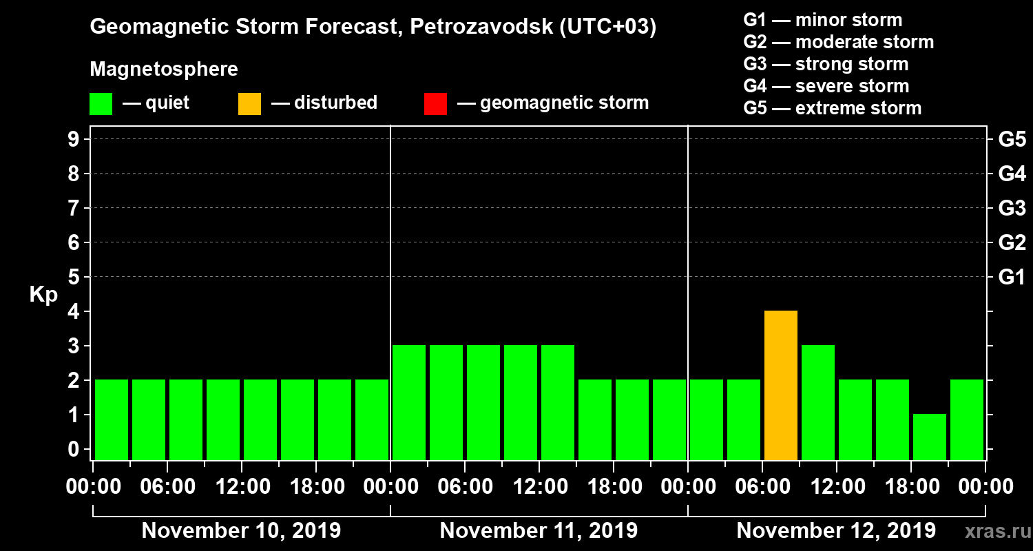 Geomagnetic activity forecast in Petrozavodsk — Nov 10, 2019