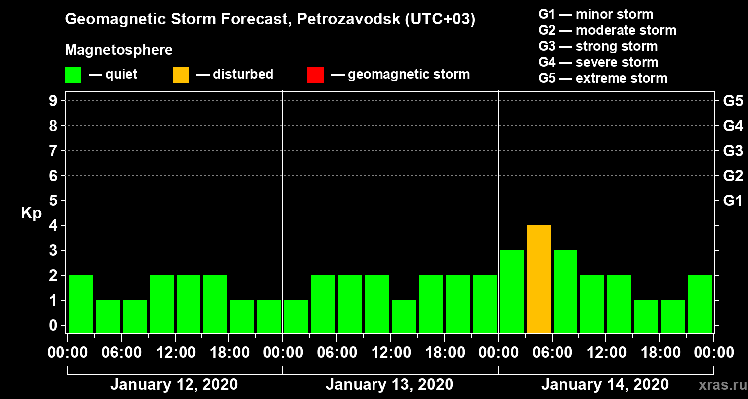 Geomagnetic storm forecast in Petrozavodsk for Jan 12, 2020