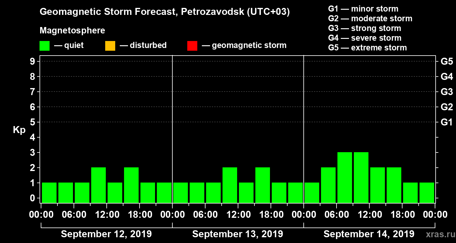 Geomagnetic storm forecast in Petrozavodsk for Sep 12, 2019